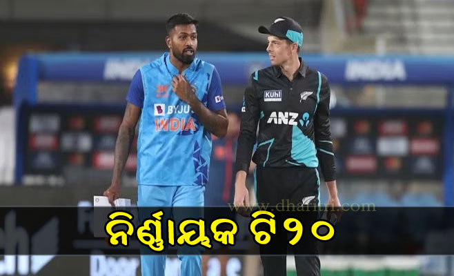 ଅହମ୍ମଦାବାଦ,୧।୨: ଭାରତ-ନ୍ୟୁଜିଲାଣ୍ଡ ମଧ୍ୟରେ ନିର୍ଣ୍ଣାୟକ ଟି୨୦ ମୁକାବିଲା ବୁଧବାର ନରେନ୍ଦ୍ର ମୋଦି ଷ୍ଟାଡିୟମରେ ଖେଳାଯାଉଛି। ମ୍ୟାଚ୍ରେ ଭାରତ ଟସ୍ ଜିତି ପ୍ରଥମେ ବ୍ୟାଟିଂ ନିଷ୍ପତ୍ତି ନେଇଛି। ପୂର୍ବରୁ ସିରିଜର ଦୁଇଟି ମୁକାବିଲାରୁ ଉଭୟ ଦଳ ଗୋଟିଏ ଲେଖାଏ ଜିତିଥିବାରୁ ଏହି ମ୍ୟାଚ୍ ବେଶ ଗୁରୁତ୍ୱ ବହନ କରୁଛି। ଗୋଟିଏ ପଟେ ଭାରତ ଏହି ମ୍ୟାଚ୍ରେ ଜିତିଲେ ସିରିଜ ଉପରେ କବ୍ଜା କରିବ। ସେହିଭଳି ନ୍ୟୁଜିଲାଣ୍ଡ ମଧ୍ୟ ଟି୨୦ ସିରିଜ ଜିତି ଦିନିକିଆ ପରାଜୟର ପ୍ରତିଶୋଧ ନେବାକୁ ଚାହିଁବ।
