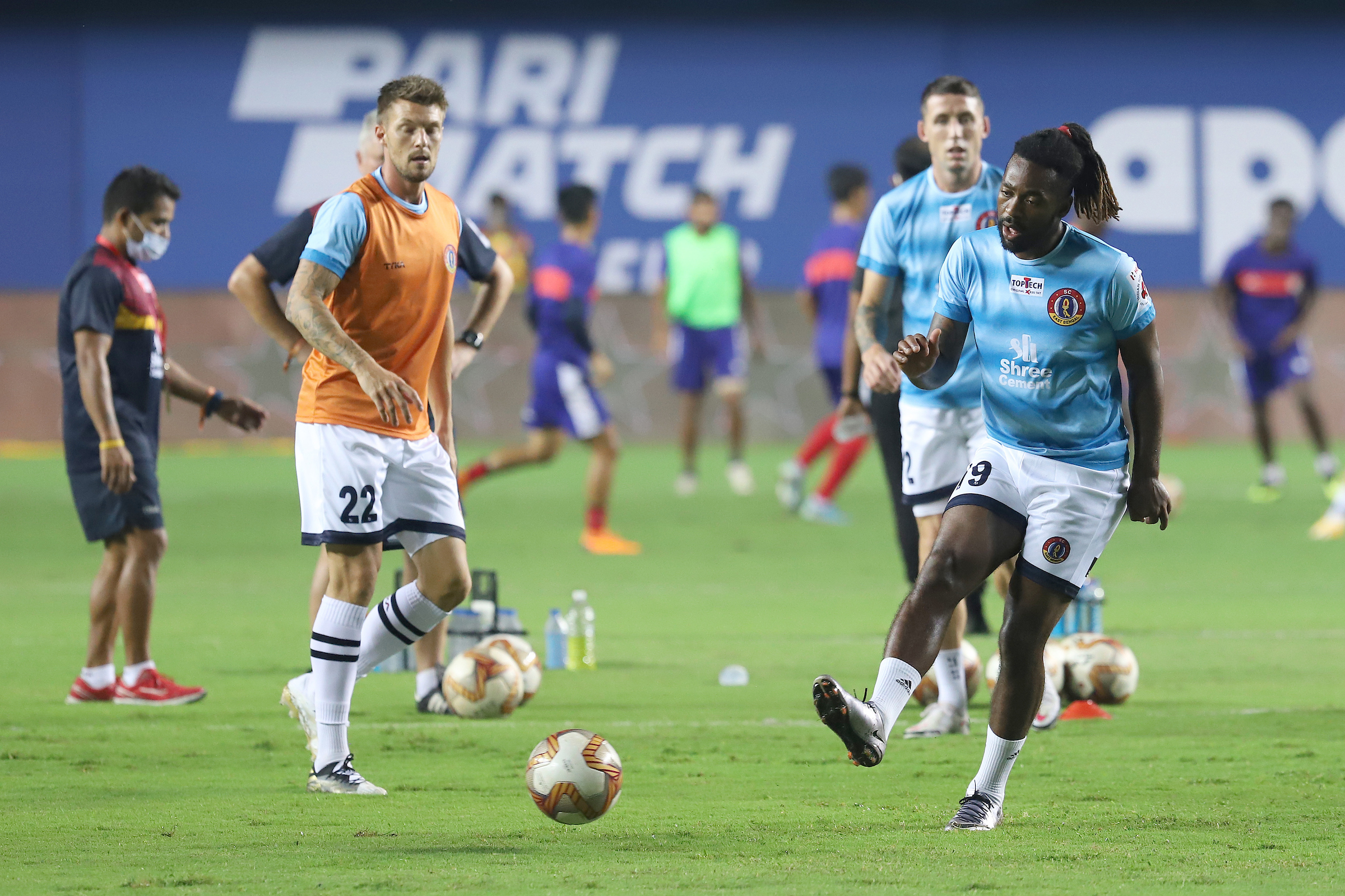 SC East Bengal players warming up before the match 17 of the 7th season of the Hero Indian Super League between NorthEast United FC and SC East Bengal held at the Tilak Maidan Stadium, Goa, India on the 5th December 2020 Photo by Faheem Hussain / Sportzpics for ISL