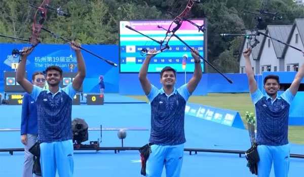 ହାଙ୍ଗଝୋ,୫।୧୦: ଏସିଆନ ଗେମ୍ସ ୨୦୨୩ରେ ଭାରତକୁ ଆଉ ଏକ ସ୍ବର୍ଣ୍ଣ ପଦକ ମିଳିଛି। ତୀରନ୍ଦାଜ ଓଜସ ଦେଓତାଲେ, ଅଭିଷେକ ବର୍ମା ଏବଂ ପ୍ରଥମେଶ ଜାବକର ଭାରତକୁ ସ୍ବର୍ଣ୍ଣ ଦେବାରେ ସଫଳ ହୋଇଛନ୍ତି।