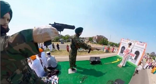 ସୂଚନାଯୋଗ୍ୟ, ଅପରେସନ ବ୍ଲୁ ଷ୍ଟାରର ୩୯ତମ ବାର୍ଷିକୀ ପୂର୍ବରୁ ଦୁଇ ଦିନ ପୂର୍ବରୁ ଜୁନ ୪ରେ ପ୍ୟାରେଡ ସମୟରେ ବିବାଦୀୟ ମେଢ ବାହାର କରାଯାଇଥିଲା। ଖାଲିସ୍ତାନ ସମର୍ଥକଙ୍କ ଏହି ମେଢରେ ଦୁଇଜଣ ଶିଖ ବନ୍ଧୁକଧାରୀ ପୂର୍ବତନ ପ୍ରଧାନମନ୍ତ୍ରୀଙ୍କୁ ଗୁଳି ଚଳାଇଥିବାର ନଜର ଆସିଥିଲା। ଏହା ସହିତ ପୋଷ୍ଟର ଲଗାଯାଇଥିଲା, ଯେଉଁଥିରେ ଏହା ବଦଳି ଯାଇଛି ବୋଲି ଲେଖାଯାଇଥିଲା । ୧୯୮୪ରେ ଶିଖ ବିରୋଧୀ ଦଙ୍ଗା ବିଷୟରେ ଅନ୍ୟ ମେଢଗୁଡିକରେ ବ୍ୟାନର ମଧ୍ୟ ରହିଥିଲା । ଏହି ଘଟଣାର ଭିଡିଓ ସୋସିଆଲ ମିଡିଆରେ ଭାଇରାଲ ହୋଇଥିଲା।