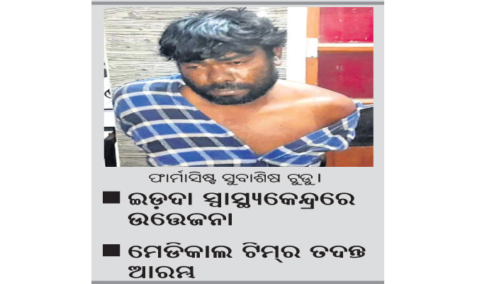 ରୂପସା, ୨୩।୨(ଡି.ଏନ.ଏ.):ବାଲେଶ୍ୱର ଜିଲା ସିଂଲା ଥାନା ଅଧୀନ ଇଡ଼ଦା ପ୍ରାଥମିକ ସ୍ବାସ୍ଥ୍ୟକେନ୍ଦ୍ରରେ ମଙ୍ଗଳବାର ଜଣେ ଫାର୍ମାସିଷ୍ଟ ନିଶାସକ୍ତ ଅବସ୍ଥାରେ ଉନ୍ମତ୍ତକାଣ୍ଡ ଘଟାଇଛନ୍ତି। ଫାର୍ମାସିଷ୍ଟଙ୍କ ଆକ୍ରମଣରେ କରୋନା ଟିକା ନେବାକୁ ଆସିଥିବା ଜଣେ ବ୍ୟକ୍ତି ଗୁରୁତର ଆହତ ହୋଇଛନ୍ତି। ତାଙ୍କ ହାତ ଓ ଗୋଡରେ ଗଭୀର କ୍ଷତ ହୋଇଛି। ଫାର୍ମାସିଷ୍ଟଜଣକ ଅନ୍ୟମାନଙ୍କୁ ଗୋଡାଇ ଆକ୍ରମଣ କରିବାରୁ ଲୋକେ ତାଙ୍କୁ କାବୁ କରି ବାନ୍ଧି ପକାଇଥିଲେ। ପରେ ସିଂଲା ଥାନା ପୋଲିସ ପହଞ୍ଚି ଫାର୍ମାସିଷ୍ଟଙ୍କୁ ଲୁହାଚେନ୍‌ରେ ବାନ୍ଧି ଥାନାକୁ ନେଇଥିଲା।