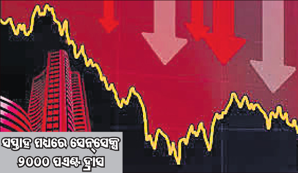 ନୂଆଦିଲ୍ଲୀ,୨୮।୨: କ୍ରମାଗତ ୭ ଦିନ ଲାଗି ଭାରତୀୟ ଶେୟାର ବଜାର କାରବାରରେ ହ୍ରାସ ଘଟିଛି। ଫଳରେ ଶେୟାର ବଜାରର ନିବେଶକମାନେ ପ୍ରାୟ ୧୦.୪୩ ଲକ୍ଷ କୋଟି ଟଙ୍କା ହରାଇଥିବା ଜଣାପଡିଛି। ବିଶେଷ କରି ଫେବୃୟାରୀ ୧୬ରୁ ୨୭ ମଧ୍ୟରେ ସେନସେକ୍ସ ପ୍ରାୟ ୨,୦୩୧ ପଏଣ୍ଟ ହ୍ରାସ ହୋଇଛି। ଏହି ସମୟ ମଧ୍ୟରେ ବମ୍ବେ ଷ୍ଟକ ଏକ୍ସଚେଞ୍ଜ (ବିଏସଇ)ରେ ତାଲିକାଭୁକ୍ତ କମ୍ପାନିଗୁଡିକର ବଜାର ପୁଞ୍ଜି ୧୦,୪୨,୭୯୦.୩୦ କୋଟି ଟଙ୍କା ହ୍ରାସ ହୋଇ ୨,୫୭,୮୮,୧୯୫.୫୭ କୋଟି ଟଙ୍କାରେ ପହଞ୍ଚତ୍ଛି। ଅପରପକ୍ଷରେ ବିକଶିତ ଦେଶ ଗୁଡିକର କେନ୍ଦ୍ରୀୟ ବ୍ୟାଙ୍କଙ୍କ ପକ୍ଷରୁ ସୁଧ ହାର ବୃଦ୍ଧି ଏବଂ ଭୌଗୋଳିକ କାରଣରୁ ଚାପରେ ଥିବା ବିଶ୍ୱ ବଜାର ସହ ବିଦେଶୀ ନିବେଶକଙ୍କ ଶେୟାର ବିକ୍ରି ଯୋଗୁ ଘରୋଇ ପୁଞ୍ଜି ବଜାର ମଧ୍ୟ ଚାପରେ ରହିଛି ବୋଲି ବଜାର ବିଶେଷଜ୍ଞମାନେ ଆକଳନ କରିଛନ୍ତି।