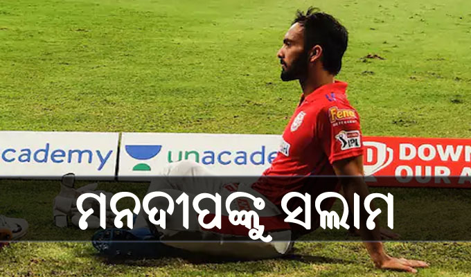 ଆଇପିଏଲର ୪୩ତମ ମୁକାବିଲାରେ କିଙ୍ଗସ ଏକାଦଶ ପଞ୍ଜାବ ୧୨ ରନରେ ସନରାଇଜର୍ସ ହାଇଦ୍ରାବାଦକୁ ପରାସ୍ତ କରିଛି। ପଞ୍ଜାବ ମ୍ୟାଚ ଜିତି ଥିଲା ସତ, କିନ୍ତୁ ଦଳର ଜଣେ ଖେଲାଳି ବେଶ୍ ଦୁଃଖି ଥିଲେ। ସେ ହେଉଛନ୍ତି ଓପନିଂ ବ୍ୟାଟ୍ସମ୍ୟାନ୍ ମନଦୀପ ସିଂ। କାରଣ ମ୍ୟାଚର ଦିନକ ପୂର୍ବେ ମନଦୀପଙ୍କ ପିତାଙ୍କର ମୃତ୍ୟୁ ହୋଇଥିଲା। ତାଙ୍କର ଏହି ସାହସ ପାଇଁ ଏବେ ସେ ଚର୍ଚ୍ଚାରେ ଅନ୍ତି। ସମସ୍ତେ ତାଙ୍କୁ ସଲାମ ମଧ୍ୟ କରୁଛନ୍ତି। ଏପରିକି ମାଷ୍ଟର୍ବ୍ଲାଷ୍ଟର୍ ସଚିନ ତେନ୍ଦୁଲକର ମଧ୍ୟ ମନଦୀପଙ୍କୁ ସଲାମ କରିଛନ୍ତି। ସଚିନ ମଧ୍ୟ ୧୯୯୯ରେ ବିଶ୍ୱକପ ଖେଳୁଥିବା ବେଳେ ତାଙ୍କ ପିତାଙ୍କର ଦେହାନ୍ତ ହୋଇଥିଲା। ଶୁକ୍ରବାର ମନଦୀପଙ୍କ ପିତା ହରଦେବ ସିଂହଙ୍କ ମୃତ୍ୟୁ ଖବର ପାଇବା ସତ୍ତ୍ୱେ ମନଦୀପ ଟିମ ସହ ରହିଥିଲେ। ଏବଂ ଭାରତ ଫେରିବା ବଦଳରେ ସେ ହାଇଦ୍ରାବାଦ ବିପକ୍ଷ ମ୍ୟାଚ ଖେଳିବାକୁ ଓହ୍ଲାଇଥିଲେ। ମନଦୀପଙ୍କ ପିତାଙ୍କୁ ଶ୍ରଦ୍ଧାଞ୍ଜଳି ଦେବା ପାଇଁ ପଞ୍ଜାବ ଟିମର ଖେଳାଳିମାନେ ହାତରେ କଳା ରଙ୍ଗର ବ୍ୟାଣ୍ଡ ପିନ୍ଧି ମଇଦାନକୁ ଓହ୍ଲାଇଥିଲେ।