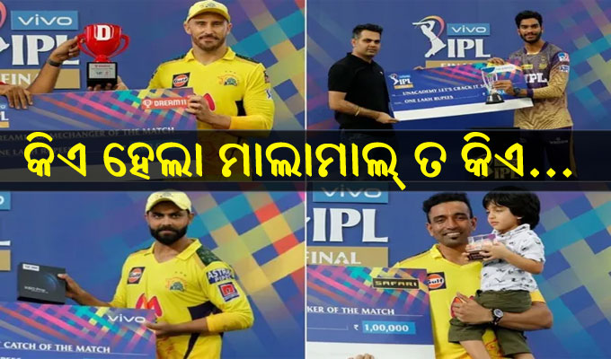 ଦୁବାଇ,୧୬।୧୦: ଇଣ୍ଡିଆନ ପ୍ରିମିୟର ଲିଗ (ଆଇପିଏଲ୍)ର ୧୪ ତମ ସଂସ୍କରଣ ଶୁକ୍ରବାର ଦୁବାଇରେ ଶେଷ ହୋଇଛି। ଚେନ୍ନାଇ ସୁପର କିଙ୍ଗ୍ସ (ସିଏସ୍କେ) କୋଲକାତା ନାଇଟ ରାଇଡର୍ସ (କେକେଆର୍)କୁ ୨୭ ରନ୍ରେ ପରାସ୍ତ କରି ଚତୁର୍ଥ ଥର ପାଇଁ ଟାଇଟଲ ଜିତିଛି। ଫାଇନାଲ ପରେ ଅନେକ ଖେଳାଳିଙ୍କୁ ବିଭିନ୍ନ ପୁରସ୍କାର ଏବଂ ପୁରସ୍କାର ରାଶି ସହିତ ସମ୍ମାନିତ କରାଯାଇଥିଲା।