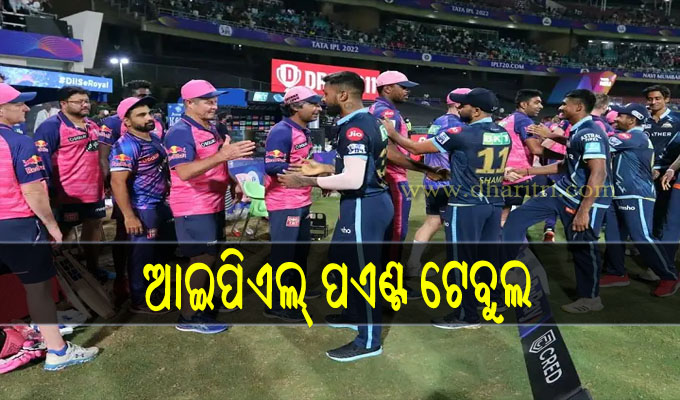 ପୁଣେ,୧୫।୪: ଆଇପିଏଲ୍‌ ୨୦୨୨ର ପଏଣ୍ଟ ଟେବୁଲରେ ଗୁଜରାଟ ଟାଇଟାନ୍ସ ଶୀର୍ଷରେ ପହଞ୍ଚିଛି। ଗୁରୁବାର ଅନୁଷ୍ଠିତ ମ୍ୟାଚରେ ରାଜସ୍ଥାନ ରୟାଲ୍ସକୁ ପରାସ୍ତ କରି ଗୁଜରାଟ ଶୀର୍ଷ ସ୍ଥାନ ହାସଲ କରିଛି। ଏହାପୂର୍ବରୁ ରାଜସ୍ଥାନ ଶୀର୍ଷରେ ଥିଲା।