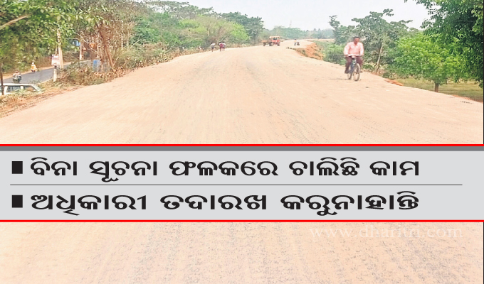 ବିନା ସୂଚନା ଫଳକରେ ଏହି କାର୍ଯ୍ୟ ଚାଲିଛି। ବିଭାଗୀୟ ଅଧିକାରୀ ମଧ୍ୟ ଏହାର ତଦାରଖ କରିବାକୁ ଆସୁନାହାନ୍ତି। ଫଳରେ ଠିକାଦାର ନିଜ ମର୍ଜିରେ କାର୍ଯ୍ୟ କରୁଛନ୍ତି। ଏଥିସହିତ କାର୍ଯ୍ୟରେ ମନ୍ଥରତା ଦେଖାଦେଇଛି। ବିଞ୍ଝାରପୁର ଜଳ ସମ୍ପଦ ବିଭାଗ, ବ୍ଲକ ଓ ତହସିଲ କାର୍ଯ୍ୟାଳୟର ୧୦୦ ମିଟର ବ୍ୟବଧାନରେ ଥିବା ନଦୀ ବନ୍ଧର ଅତି ନିକଟରୁ ଜେସିବି ସାହାଯ୍ୟରେ ହଜାର ହଜାର ଟ୍ରିପ୍ ମାଟି ଉଠାଯାଉଛି। ଏହାଦ୍ୱାରା ବନ୍ୟା ଆସିଲେ ନଦୀକୂଳରେ ଅବସ୍ଥିତ ବିଞ୍ଝାରପୁର, ସଇଦପୁର, କଲ୍ୟାଣପୁର, ଘଣ୍ଟିଆଳି, ଗୁହାଳି, ଫତେପୁର, ବାଛଳ, କଏଣା ରଘୁନାଥପୁର ଓ ମାଁସଡା ଆଦି ପଞ୍ଚାୟତ ପ୍ରତି ବିପଦ ସୃଷ୍ଟି ହେବ। ଏହାକୁ ନେଇ ପଞ୍ଚାୟତବାସୀ ଆଶାଆଶଙ୍କା ମଧ୍ୟରେ କାଳାତିପାତ କରୁଛନ୍ତି। ଏ ସମ୍ପର୍କରେ ଅଞ୍ଚଳବାସୀଙ୍କ ତରଫରୁ ଜଳ ସମ୍ପଦ ବିଭାଗ ନିକଟରେ ଅଭିଯୋଗ କଲେ ମଧ୍ୟ କୌଣସି କାର୍ଯ୍ୟାନୁଷ୍ଠାନ ଗ୍ରହଣ କରାଯାଇନାହିଁ।