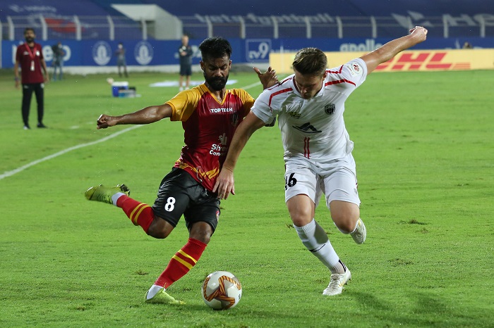ମାର୍ଗାଓ,୨୪।୨: ଇଣ୍ଡିଆନ ସୁପର ଲିଗ୍ (ଆଇଏସ୍ଏଲ୍)ରେ ମଙ୍ଗଳବାର ଖେଳଯାଇଥିବା ମ୍ୟାଚ୍ରେ ନର୍ଥଇଷ୍ଟ ୟୁନାଇଟେଡ ୨-୧ ଗୋଲରେ ଇଷ୍ଟ ବେଙ୍ଗଲ୍କୁ ପରାସ୍ତ କରିଛି। ନର୍ଥଇଷ୍ଟ ତରଫରୁ ଭି.ପି. ସୁହେର ୪୮ତମ ମିନିଟ୍ରେ ଗୋଲ ଦେଇଥିଲେ। ୫୫ ମିନିଟ୍ରେ ଇଷ୍ଟ ବେଙ୍ଗଲର ସାର୍ଥକ ଗୋଲୁଇଙ୍କ ଆତ୍ମଘାତୀ ଗୋଲ ବଲରେ ନର୍ଥଇଷ୍ଟ ୨-୦ରେ ଅଗ୍ରଣୀ ହାସଲ କରିଥିଲା। ଏହାପରେ ୮୬ତମ ମିନିଟ୍ରେ ସାର୍ଥକ ଗୋଲୁଇ ଗୋଲ ଦେଇ ପରାଜୟ ବ୍ୟବଧାନକୁ କମାଇଥିଲେ। ୧୭ ପଏଣ୍ଟ ସହ ଇଷ୍ଟ ବେଙ୍ଗଲ ନବମ ସ୍ଥାନରେ ରହିଥିବା ବେଳେ ନର୍ଥଇଷ୍ଟ ୩୦ ପଏଣ୍ଟ ପାଇ ଚତୁର୍ଥ ସ୍ଥାନରେ ରହିଛି।