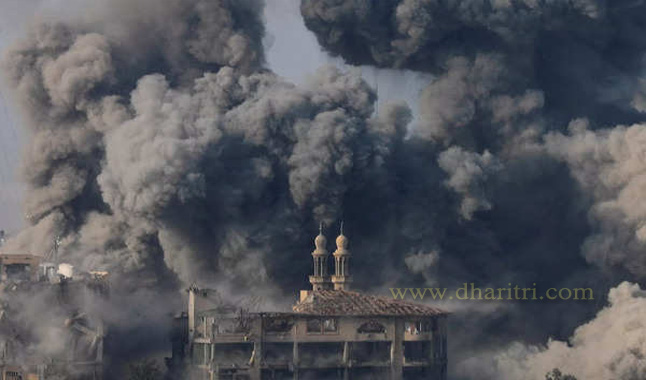 ଗାଜା,୧୨।୧୦: ଇସ୍ରାଏଲ ଓ ନର ସଂହାର ଚଲାଇଥିବା ପାଲେଷ୍ଟାଇନମଧ୍ୟରେ ଷଷ୍ଠ ଦିନ ମଧ୍ୟ ଯୁଦ୍ଧ ଜାରି ରହିଛି। ହମାସ ଇସ୍ରାଏଲୀଙ୍କୁ ବନ୍ଧକ ରଖି ରକେଟ ଆକ୍ରମଣ ପାଇଁ ଧମକ ଦେଉଥିବାବେଳେ ଇସ୍ରାଏଲ ହମାସକୁ ହଟାଇବାକୁ ଶପଥ ନେଇଛି।
