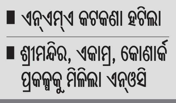 ଭୁବନେଶ୍ୱର,୨୧ା୯(ବ୍ୟୁରୋ): ପୁରୀ ଶ୍ରୀମନ୍ଦିର ପରିକ୍ରମା ପ୍ରକଳ୍ପ, ଭୁବନେଶ୍ୱର ଏକାମ୍ର ପ୍ରକଳ୍ପ ଏବଂ କୋଣାର୍କ ପ୍ରକଳ୍ପ ପାଇଁ ଜାତୀୟ ଐତିହ୍ୟ କର୍ତ୍ତୃପକ୍ଷ (ଏନ୍‌ଏମ୍‌ଏ) ନୋ ଅବ୍‌ଜେକ୍ସନ ସାର୍ଟିଫିକେଟ (ଏନ୍‌ଓସି) ଦେଇଛନ୍ତି। କେନ୍ଦ୍ର ସଂସ୍କୃତି ମନ୍ତ୍ରଣାଳୟ ପକ୍ଷରୁ ଏ ନେଇ ରାଜ୍ୟ ସଂସ୍କୃତି ବିଭାଗକୁ ଅବଗତ କରାଯାଇଛି। ପ୍ରତିବନ୍ଧିତ ଅଞ୍ଚଳରେ ହେଉଥିବା ନିର୍ମାଣ କାର୍ଯ୍ୟକୁ ଅନୁମତି ଦିଆଯାଇଛି। ଏନ୍‌ଏମ୍‌ଏ କଟକଣା ରହିଥିବାରୁ ଉକ୍ତ ଅଞ୍ଚଳରେ ବିକାଶ କାର୍ଯ୍ୟ ତ୍ୱରାନ୍ବିତ କରାଯାଇପାରୁ ନ ଥିଲା। ଏହି କଟକଣାକୁ ହଟାଇବା ପାଇଁ ଓଡ଼ିଶା ବ୍ରିଜ୍‌ ଆଣ୍ଡ କନ୍‌ଷ୍ଟ୍ରକ୍ସନ କର୍ପୋରେଶନ (ଓବିସିସି) ପକ୍ଷରୁ ଏନ୍‌ଏମ୍‌ଏ ନିକଟରେ ଏକ ସଂଶୋଧିତ ସମ୍ପୂର୍ଣ୍ଣ ପ୍ରକଳ୍ପ ରିପୋର୍ଟ (ଡିପିଆର) ଦାଖଲ କରାଯାଇଥିଲା। ଏହାକୁ ତର୍ଜମା କରାଯିବା ପରେ ଏନ୍‌ଏମ୍‌ଏ ପକ୍ଷରୁ ଏନ୍‌ଓସି ପ୍ରଦାନ କରାଯାଇଛି। ଶ୍ରୀମନ୍ଦିର ପରିକ୍ରମା ପ୍ରକଳ୍ପରେ ନିର୍ମାଣ ହେଉଥିବା କ୍ଲକ୍‌ ରୁମ୍‌, ମିନି କ୍ଲକ୍‌ ରୁମ୍‌, ସେଲ୍‌ଟର ପାଭେଲିୟନ, ମହିଳା ଟଏଲେଟ, ସେବାୟତ ଟଏଲେଟ, ଇଲେକ୍ଟ୍ରିକାଲ ରୁମ, କିଓସ୍କୋ, ପୋଲିସ ସର୍ଭିସ ସେଣ୍ଟର, ଫାଷ୍ଟ ଏଡ୍‌ ସେଣ୍ଟର, ଏଟିଏମ୍‌ ଇତ୍ୟାଦି ନିର୍ମାଣ କ୍ଷେତ୍ରରେ ରହିଥିବା ବାଧା ଦୂର ହୋଇଛି। ସେହିପରି ଏକାମ୍ର ପ୍ରକଳ୍ପ ପାଇଁ ଲିଙ୍ଗରାଜ ମଲ୍‌ଟିମୋଡାଲ ହବ୍‌, କେଦାରଗୌରୀ ପାକିର୍ଂ, ଲିଙ୍ଗରାଜ ଏଣ୍ଟ୍ରାନ୍ସ ପ୍ଲାଜା, ହେରିଟେଜ ପାର୍କ, କେଦାରଗୌରୀ ପ୍ଲାଜା, ଅନନ୍ତ ବାସୁଦେବ ପ୍ଲାଜା ଓ ଅନ୍ୟାନ୍ୟ ନିର୍ମାଣ କାର୍ଯ୍ୟ କରିବାକୁ ଏନ୍‌ଏମ୍‌ଏ ଏନଓସି ଦେଇଛନ୍ତି। ସେହିପରି କୋଣାର୍କ ପ୍ରକଳ୍ପ ପାଇଁ ମଧ୍ୟ ଏନ୍‌ଓସି ଦେଇଛନ୍ତି।