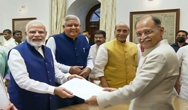 ନୂଆଦିଲ୍ଲୀ,୧୮।୭: ଏନ୍ଡିଏର ଉପରାଷ୍ଟ୍ରପତି ପ୍ରାର୍ଥୀ ଜଗଦୀପ ଧନକର ସୋମବାର ସଂସଦ ଭବନରେ ନାମାଙ୍କନପତ୍ର ଦାଖଲ କରିଛନ୍ତି। ନାମାଙ୍କନପତ୍ର ଦାଖଲ କରିବା ସମୟରେ ପ୍ରଧାନମନ୍ତ୍ରୀ ନରେନ୍ଦ୍ର ମୋଦି, ଭାଜପା ରାଷ୍ଟ୍ରୀୟ ଅଧ୍ୟକ୍ଷ ଜେପି ନଡ୍ଡା ଓ ଅନେକ କେନ୍ଦ୍ରମନ୍ତ୍ରୀ ଉପସ୍ଥିତ ରହିଥିଲେ। ନାମାଙ୍କନ ଦାଖଲ କରିବା ପୂର୍ବରୁ ଧନକର ପଶ୍ଚିମବଙ୍ଗର ରାଜ୍ୟପାଳ ପଦରୁ ଇସ୍ତଫା ଦେଇଛନ୍ତି। ଧନଖଡ ପ୍ରଥମ ପ୍ରସ୍ତାବକ ଭାବେ ପ୍ରଧାନମନ୍ତ୍ରୀ ମୋଦି ଦସ୍ତଖତ କରିଥିବା ବେଳେ ପ୍ରାର୍ଥିପତ୍ରକୁ ରିଟର୍ଣ୍ଣିଂ ଅଫିସରକୁ ହସ୍ତାନ୍ତର କରିଦିଆଯାଇଛି। ଅନ୍ୟପକ୍ଷରେ, ରାଜସ୍ଥାନର ପୂର୍ବତନ ରାଜ୍ୟପାଳ ମାର୍ଗାରେଟ୍ ଆଲ୍ଭାଙ୍କୁ ବିରୋଧୀ ଦଳଗୁଡିକ ମିଳିତ ପ୍ରାର୍ଥୀ କରିଛନ୍ତି। ମଙ୍ଗଳବାର ମାର୍ଗାରେଟ୍ ଆଲ୍ଭା ନାମାଙ୍କନପତ୍ର ଦାଖଲ କରିବେ ବୋଲି ଜଣାପଡ଼ିଛି।