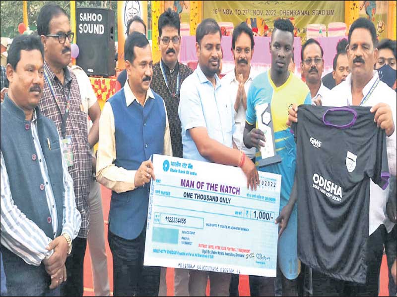 ଢେଙ୍କାନାଳ ଅଫିସ,୧୭ା୧୧: ଢେଙ୍କାନାଳ କ୍ରୀଡ଼ା ସଂଘ ଆନୁକୂଲ୍ୟରେ ତଥା ରାଜ୍ୟ ସରକାରଙ୍କ କ୍ରୀଡ଼ା ଓ ଯୁବ ସେବା ବିଭାଗ ଏବଂ ସ୍ବର୍ଗତ ଅଧିକାରୀ ସାମଲ ମେମୋରିଆଲ ଟ୍ରଷ୍ଟର ମିଳିତ ସହଯୋଗରେ ୪ର୍ଥ ସର୍ବଭାରତୀୟ ଆମନ୍ତ୍ରଣ ଫୁଟ୍ବଲ ପ୍ରତିଯୋଗିତା ବୁଧବାର ଢେଙ୍କାନାଳରେ ଆରମ୍ଭ ହୋଇଛି। ରାଜ୍ୟ କ୍ରୀଡ଼ା ମନ୍ତ୍ରୀ ତୁଷାରକାନ୍ତି ବେହେରା ମୁଖ୍ୟ ଅତିଥି ଭାବେ ଯୋଗଦେଇ ଏହି ପ୍ରତିଯୋଗିତାକୁ ଉଦ୍ଘାଟନ କରିଥିଲେ। ସମ୍ମାନିତ ଅତିଥି ଭାବେ ଜିଲା କ୍ରୀଡ଼ା ସଂଘ ସଭାପତି ତଥା ଜିଲାପାଳ ସରୋଜ କୁମାର ସେଠୀ ଓ ଅତିରିକ୍ତ ଜିଲାପାଳ ରମେଶ ଚନ୍ଦ୍ର ସେଠୀ ଯୋଗ ଦେଇଥିଲେ। ଅପରାହ୍ନ ୩ଟାରେ ଉଦ୍ଘାଟନୀ କ୍ୱାର୍ଟର ଫାଇନାଲ ମ୍ୟାଚ ଖେଳାଯାଇଥିଲା। ଏଥିରେ ମା’ ମଙ୍ଗଳା କ୍ଲବ ଢେଙ୍କାନାଳକୁ ୪-୦ ଗୋଲରେ ପରାସ୍ତ କରି ଜଗା ୟୁନାଇଟେଡ୍ ଭୁବନେଶ୍ୱର ସେମି ଫାଇନାଲରେ ପ୍ରବେଶ କରିଥିଲା। ପ୍ରଥମାର୍ଦ୍ଧରେ ମ୍ୟାଚ ଗୋଲଶୂନ୍ୟ ରହିଥିଲା।