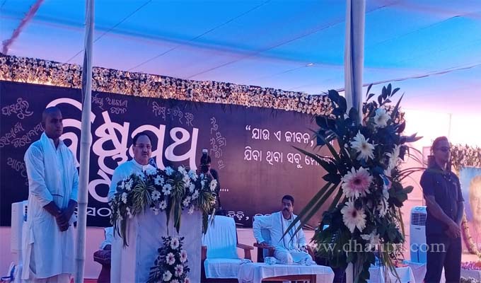 ଭଦ୍ରକ ଅଫିସ,୩୦ା୯: ବିରୋଧୀ ଦଳ ଉପନେତା ତଥା ଧାମନଗର ବିଧାୟକ ସ୍ବର୍ଗତ ବିଷ୍ଣ ସେଠୀଙ୍କ ଦ୍ୱାଦଶାହ ଅବସରରେ ଅନୁଷ୍ଠିତ ଶ୍ରଦ୍ଧାଞ୍ଜଳି ସଭାରେ ଯୋଗ ଦେଲେ ଭାଜପା ରାଷ୍ଟ୍ରୀୟ ଅଧ୍ୟକ୍ଷ ଜଗମୋହନ ନଡ୍ଡା। ପୂର୍ବତନ ମନ୍ତ୍ରୀ ମନମୋହନ ସାମଲଙ୍କ ସଭାପତିତ୍ୱରେ ଶୁକ୍ରବାର ପୂର୍ବାହ୍ନରେ ଅନୁଷ୍ଠିତ ସଭାରେ ନଡ୍ଡାଙ୍କ ସମେତ କେନ୍ଦ୍ର ଶିକ୍ଷାମନ୍ତ୍ରୀ ଧର୍ମେନ୍ଦ୍ର ପ୍ରଧାନ ଯୋଗ ଦେଇ ଶ୍ରଦ୍ଧାଞ୍ଜଳି ଅର୍ପଣ କରିବା ସହିତ ବକ୍ତବ୍ୟ ପ୍ରଦାନ କରିଥିଲେ। ବିଷ୍ଣୁଙ୍କ ଜୀବନୀ ଉପରେ ଆଧାରିତ ପତ୍ରିକା ବିଷ୍ଣୁପଥ ଉନ୍ମୋଚନ କରିଥିଲେ। ହେଲିକପ୍ଟର ଯୋଗେ ତିହିଡ଼ି ବଜାର କାଳୀପଡିଆଠାରେ ପ୍ରସ୍ତୁତ ହେଲିପ୍ୟାଡ୍ରେ ପହଞ୍ଚିବା ପରେ କାର୍ ଯୋଗେ ତାଙ୍କ ଜନ୍ମ ମାଟି ମଙ୍ଗରାଜପୁର ଗାଁକୁ ଯାଇ ପରିବାର ଲୋକଙ୍କୁ ଭେଟି ସାନ୍ତ୍ୱନା ଜଣାଇଥିଲେ। ପରେ ତିହିଡ଼ି କଲେଜ ପରିସରରେ ଆୟୋଜିତ ସଭାରେ ଯୋଗ ଦେଇଥିଲେ। ବିଷ୍ଣଙ୍କ ସ୍ମୃତିରେ କଲେଜ ପରିସରରେ ୨ଟି ଚାରା ରୋପଣ କରିଥିଲେ।