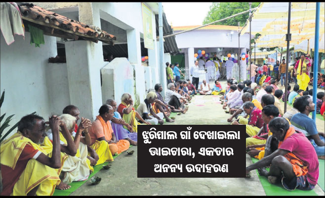 ସୁନ୍ଦରଗଡ,୨୧ା୯(ଜୟ ନାରାୟଣ ମେଣ୍ଡୁଳି): ଖରା, ବର୍ଷା, ଶୀତ, କାକରରେ ହାଡ଼ଭଙ୍ଗା ପରିଶ୍ରମ କରି ମାଟି ମା’ରୁ ଉତ୍ପାଦିତ ପ୍ରଥମ ଶସ୍ୟକୁ ସମ୍ମାନ ଦେବାର ପର୍ବ ହେଉଛି ନୂଆଁଖାଇ। ପ୍ରତିବର୍ଷ ପରି ଚଳିତ ବର୍ଷ ମଧ୍ୟ ହସ ଉଲ୍ଲାସରେ ଏହି ଗଣପର୍ବକୁ ପାଳନ କରଛନ୍ତି ସୁନ୍ଦରଗଡ଼ ଜିଲା ଲେଫ୍ରିପଡ଼ା ବ୍ଲକ ଝୁରିମାଲ ଗ୍ରାମବାସୀ। ନୂଆଁଖାଇକୁ ନିଆରା ଢଙ୍ଗରେ ପାଳନ କରିବା ପାଇ ୨ ସପ୍ତାହ ପୂର୍ବରୁ ପ୍ରସ୍ତୁତିରେ ଲାଗିପଡିଥିଲେ ସଂପୂର୍ଣ୍ଣ ଗ୍ରାମବାସୀ। ବୁଧବାର ସକାଳେ ସର୍ବପ୍ରଥମେ ଗ୍ରାମର ଆରାଧ୍ୟ ଦେବତା ସଙ୍କଟମୋଚନ ବଜରଙ୍ଗବଲୀଙ୍କ ପାଖରେ ନୂଆଁ ଚାଉଳ ଲାଗି ପୂଜାର୍ଚ୍ଚନା କରିବା ପରେ ଗ୍ରାମର ପ୍ରତ୍ୟେକ ପରିବାର ନିଜ ନିଜ ଇଷ୍ଟଦେବା ଦେବୀଙ୍କୁ ପୂଜାର୍ଚ୍ଚନା କରି ଅପରାହ୍ନ ୧ଟାରେ ଗାଁ ମଣ୍ଡପରେ ଏକାଠି ହୋଇଥିଲେ। ଏହାପରେ ପାରମ୍ପାରିକ ସଙ୍କୀର୍ତ୍ତନ, ସଂପ୍ରଦା ଓ ଢୋଲ ନିଶାନର ତାଳେ ତାଳେ ଝୁମୀ ଉଠିଥିଲା ଗାଁ ଦାଣ୍ଡ। ସାମୂହିକ ଏକତାର ଏହି ବିରଳ ପରମ୍ପରାରେ ସମ୍ମାନିତ ଅତିଥିଭାବେ ଯୋଗଦେଇଥିଲେ ଜିଲା ପରିଷଦ ଅଧ୍ୟକ୍ଷା କୁନ୍ତୀ ପ୍ରଧାନ, ସୁନ୍ଦରଗଡ ବନଖଣ୍ଡ ଅଧିକାରୀ ପ୍ରଦୀପ ମିରାସେ। ଜିଲା ପରିଷଦ ଅଧ୍ୟକ୍ଷା ପ୍ରଧାନ ଝୁରିମାଲର ଏହି ମହାନ ପରମ୍ପରା କେବଳ ରାଜ୍ୟ ନୁହେଁ ଦେଶରେ ଏକ ଯୁଗାନ୍ତକାରୀ ଅଭିନବ ଉଦାହରଣ ବୋଲି କହିଥିଲେ। ବନଖଣ୍ଡ ଅଧିକାରୀ ମିରାସେ ଝୁରିମାଲର ନୂଆଁଖାଇ ନିଜର ବ୍ୟକ୍ତିଗତ ଜୀବନରେ ଏକ ଅଭୂଲା ସ୍ମୃତି ରହିବା ତଥା ଯେଉଁଠି ଥିଲେ ବି ସେ ଝୁରିମାଲର ନୂଆଁଖାଇରେ ଯୋଗଦେବାକୁ ଚେଷ୍ଟା କରିବେ ବୋଲି କହିଥିଲେ। ସ୍ବତନ୍ତ୍ର ଅତିଥିଭାବେ ଉଦୀୟମାନ କଣ୍ଠଶିଳ୍ପୀ ମଧୁସ୍ମିତା ନାଏକ ଯୋଗଦେଇ ନୂଆଁଖାଇ ସଙ୍ଗୀତ, ଓଲିଉଡ ତାରକା ଶୁଭମ ନାଏକଙ୍କ ସଂଳାପ, ପ୍ରସିଦ୍ଧ ହାସ୍ୟ କଳାକାର କେଦାରନାଥ ପଟେଲ ଓ ମନୋରଞ୍ଜନ ପଟେଲଙ୍କ ଅଭିନୟ ବେଶ ମନଛୁଆଁ ହୋଇଥିଲା। ଏହାପରେ ଆରମ୍ଭ ହୋଇଥିଲା ସାମୂହିକ ନୂଆଁଖାଇର ଅଭିନବ ପରମ୍ପରା। ଗାଁ ଦାଣ୍ଡରେ ଜାତି, ଧର୍ମ,ବର୍ଣ୍ଣ ନିର୍ବିଶେଷର ଧାଡିକୁ ଧାଡି ବସିଥିଲେ ସମସ୍ତ ଗ୍ରାମବାସୀ। ଆରମ୍ଭ ହୋଇଥିଲା ନବାହ୍ନ ସାଙ୍ଗକୁ ବିବିଧ ମିଷ୍ଟାନ୍ନ ବଣ୍ଟନ। ଗ୍ରାମର ସମୁଦାୟ ୧୬୩ଟି ପରିବାର ସାଙ୍ଗକୁ ପଡୋଶୀ ଗାଁର ହଜାର ହଜାର ଲୋକ ସାମିଲ ହୋଇ ଆନନ୍ଦ ଉଲ୍ଲାସର ସହିତ ପାଳନ କରିଥିଲେ ସାମୂହିକ ନୂଆଁଖାଇ। ଗାଁରେ ଏକତା, ସହଭାଗିତା ଓ ଭାଇଚାରାର ଏକ ବିରଳ ଦୃଷ୍ଟାନ୍ତ ଏହି ଗ୍ରାମରେ ଦେଖିବାକୁ ମିଳିଛି। ଦୀର୍ଘ ୧୧ ବର୍ଷ ଧରି ସାମୂହିକ ନୂଆଁଖାଇ ପାଳନ କରୁଛନ୍ତି ଏହି ଗ୍ରାମବାସୀ। ଏହା ପରେ ନୂଆଁଖାଇ ଭେଟ ଘାଟ ସାଙ୍ଗକୁ ବିଭିନ୍ନ ବିଲୁପ୍ତ ପ୍ରାୟ ଖେଳ ଯଥା:- ପୁଚି ଖେଳ, ଶଙ୍ଖ ଫୁକା, ହୁଳହୁଳି, ଚାମୁଚ ରେଶ, ରଶି ଡିଆଁ ଇତ୍ୟାଦିରେ ମଜ୍ଜି ଯାଇଥିଲେ ଗ୍ରାମବାସୀ। ଏହି ସାମୂହିକ ନୂଆଁଖାଇକୁ ଦେଶ ବିଦେଶରୁ ଅନେକ ଶୁଭେଚ୍ଛୁ ଅଭିନନ୍ଦନ ଜଣାଇ ଏହି ପରମ୍ପରା ବଜାୟ ରଖିବାକୁ ଆହ୍ବାନ ହେଇଥିଲେ। ସଂପୂର୍ଣ୍ଣ କାର୍ଯ୍ୟକ୍ରମକୁ ଝୁରିମାଲ ବନ ସୁରକ୍ଷା ସମିତି, ଜୟ ବଜରଙ୍ଗ କ୍ଲବ ଓ ସ୍ବ୍‌ଚ୍ଛୋସେବୀ ଅନୁଷ୍ଠାନ ସେବକର କର୍ମକର୍ତ୍ତା ପରିଚାଳନା କରିଥିଲେ।