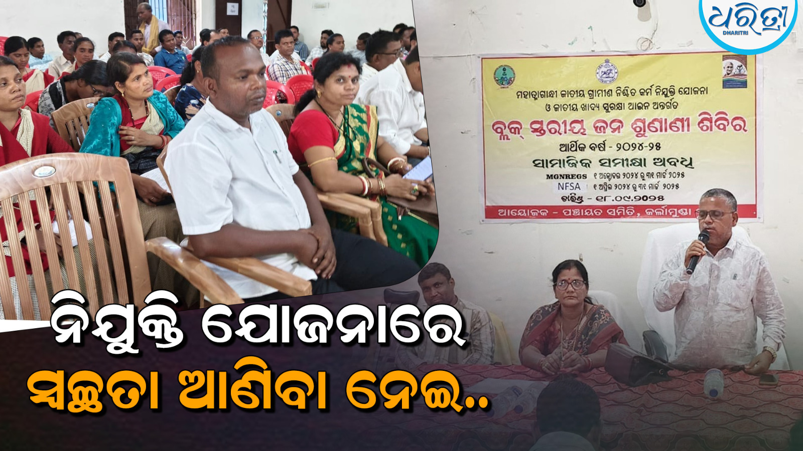 ପ୍ରକାଶ ଥାଉକି, ଏହି ଶିବିରରେ ମୁଖ୍ୟତଃ ମହାତ୍ମାଗାନ୍ଧୀ କର୍ମନିଯୁକ୍ତି ଯୋଜନା ଓ ଜାତୀୟ ଖାଦ୍ୟ ସୁରକ୍ଷା ଆଇନ ଅନ୍ତର୍ଗତ ୨୦୨୪-୨୫ ଆର୍ଥିକ ବର୍ଷର ଜନ ଶୁଣାଣି କାର୍ଯ୍ୟକ୍ରମ ରହିଥିଲା। ସଭାକାର୍ଯ୍ୟରେ ବ୍ଲକ ସୋସିଆଲ ଅଡିଟର (ବିଏସ୍ଏ) ଉତ୍ତମ କୁମାର ସାହୁ ସଂଯୋଜନା କରିଥିବାବେଳେ ଏସିପି ବିକାଶ ନାୟକ, ଏପିଓ ଲିଜା ବରିହାଙ୍କ ସମେତ ସମସ୍ତ ଗ୍ରାମ୍ୟ ସମ୍ବଳ ବ୍ୟକ୍ତି, ଆକାଉଣ୍ଟାଣ୍ଟ୍ କମ୍ ଡିଇଓ, ପଞ୍ଚାୟତ କାର୍ଯ୍ୟ ନିର୍ବାହୀ ଅଧିକାରୀମାନେ ଯୋଗ ଦେଇଥିଲେ।
