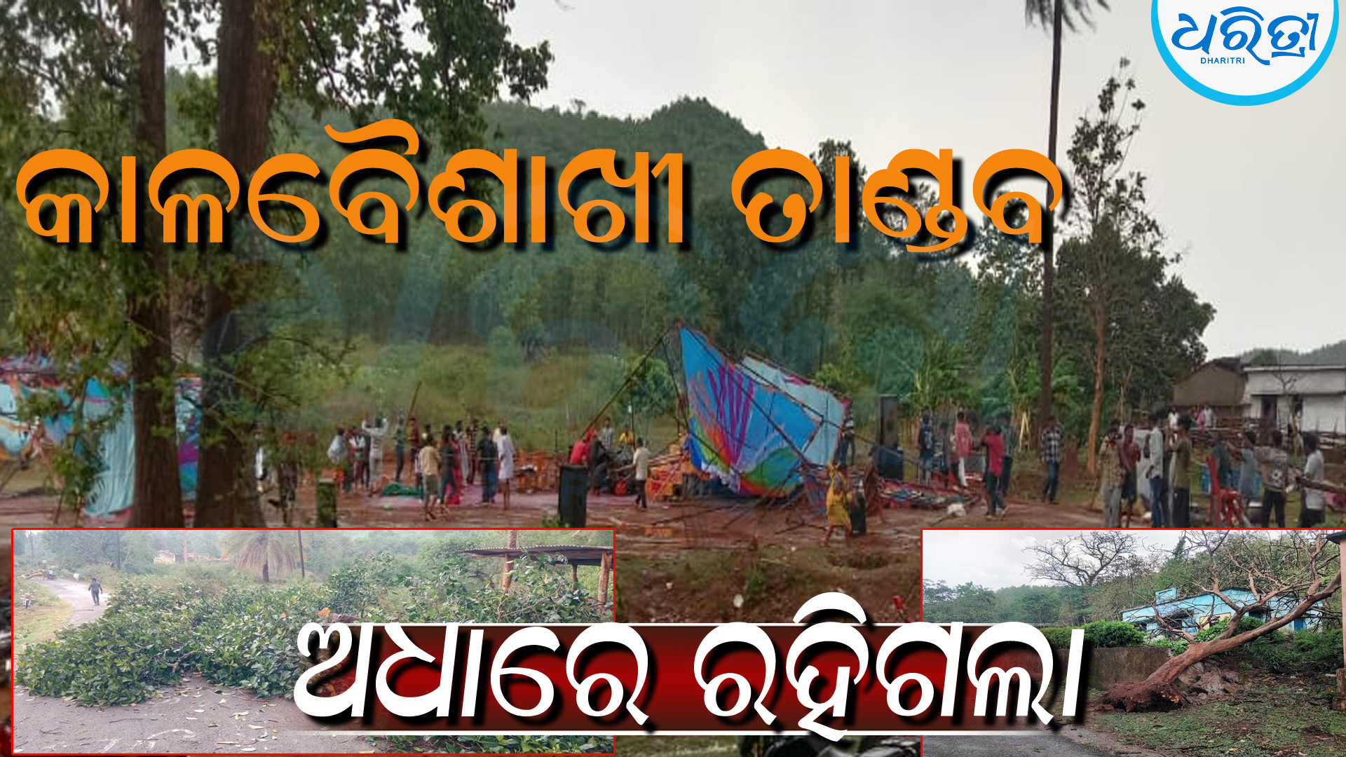 ଖଜୁରିପଡ଼ା,୧୨ା୫ (ବିଦୁର ବେହେରା): ଖଜୁରିପଡ଼ା ବ୍ଲକ୍ ଅନ୍ତର୍ଗତ ମାଲଗୁଣ୍ଡିଠାରେ ଅଷ୍ଟ ପ୍ରହର ନାମ ଯଜ୍ଞ ଉପଲକ୍ଷେ ଦଳପଡ଼ା ଏବଂ ବଡଭୂଇଁ ଗ୍ରାମର ୨ଟି ପ୍ରହଲ୍ଲାଦ ନାଟକ ଚାଲିଥିବା ବେଳେ ଅପରାହ୍ନ ୪ଟା ବେଳେ ଘଡ଼ଘଡ଼ି ବିଜୁଳି ସହିତ ପବନ ହୋଇ ନାଟକ ମଞ୍ଚ ଭାଙ୍ଗି ଯାଇଥିଲା। ଫଳରେ ଦର୍ଶକମାନେ ନାହିଁ ନ ଥିବା ହଇରାଣ ହୋଇଥିଲେ। ଅନ୍ୟପକ୍ଷେ କାଳବୈଶାଖୀର ତାଣ୍ଡବରେ ଗଛ ଭାଙ୍ଗି ରାସ୍ତା ଅବରୋଧ ହୋଇଥିଲା। ସେହିପରି ରାଇଖୋଲ ରାସ୍ତା ଉପରେ, ସିଦୀଙ୍ଗି ଅଙ୍ଗନୱାଡ଼ି ଠାରେ ଏବଂ ବଲସକୁମ୍ପା ସ୍କୁଲ ଛାତ ଉପରେ ଗଛ ଭାଙ୍ଗି ପଡ଼ିଥିବା ଦେଖିବାକୁ ମିଳିଛି।