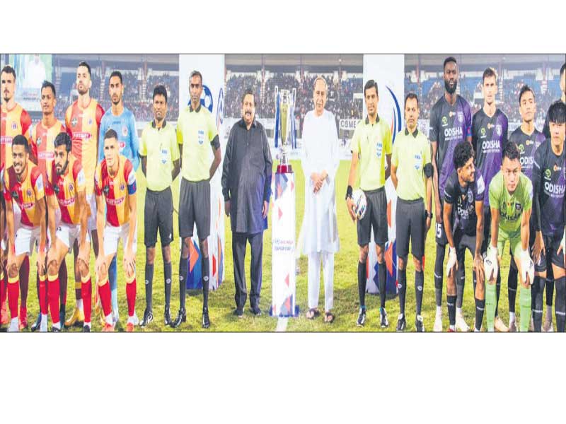 ଭୁବନେଶ୍ୱର, ୨୯।୧, (ସରୋଜ ଜେନା): ଐତିହାସିକ କଳିଙ୍ଗ ଷ୍ଟାଡିୟମରେ ଉଦ୍ଯାପିତ ହୋଇଯାଇଛି କଳିଙ୍ଗ ସୁପର କପ୍ ଫୁଟବଲ ଟୁର୍ନାମେଣ୍ଟ। ନିର୍ଦ୍ଧାରିତ ସମୟରେ ମ୍ୟାଚ ୨-୨ରେ ରହିବା ଫଳରେ ଅତିରିକ୍ତ ସମୟରେ କ୍ଲେଟନ୍ ସିଲ୍ଭାଙ୍କ ଗୋଲ ବଳରେ ଡିଫେଣ୍ଡିଂ ଚାମ୍ପିୟନ୍ ଓଡ଼ିଶା ଏଫ୍ସି (ଓଏଫ୍ସି)କୁ ୩-୨ଗୋଲରେ ପରାସ୍ତ କରିବାସହ ଚାମ୍ପିୟନ ଆଖ୍ୟା ଅର୍ଜନ କରିଛି ଇଷ୍ଟବେଙ୍ଗଲ। ଇଷ୍ଟବେଙ୍ଗଲ ପକ୍ଷରୁ ନନ୍ଦ କୁମାର ଶେକର (୫୨ ମିନିଟ) ଓ କ୍ଲେଟନ୍ ସିଲ୍ଭା (୬୦ ଓ ୧୧୧ ମିନିଟ)ରେ ୨ଟି ଗୋଲ ଦେଇଥିବାବେଳେ ଓଏଫ୍ସି ପକ୍ଷରୁ ୩୭ତମ ମିନିଟରେ ଡିଏଗୋ ମରିସିଓ ଓ ଅହମଦ ଜାହୋହ (୯୦+୬ ମିନିଟରେ) ଗୋଟିଏ ଲେଖାଏ ଗୋଲ ଦେଇଥିଲେ। ଫାଇନାଲ ପୂର୍ବରୁ ଓଡ଼ିଶା ମୁଖ୍ୟମନ୍ତ୍ରୀ ନବୀନ ପଟ୍ଟନାୟକ ଅତିଥି ଭାବରେଯୋଗ ଦେଇଥିଲେ। ଉଭୟ ଦଳର ଖେଳାଳିଙ୍କୁ ଭେଟିବାସହ ପରିଚୟ ହୋଇଥିଲେ ମୁଖ୍ୟମନ୍ତ୍ରୀ। ସୁପର କପ୍ ଭଳି ଟୁର୍ନାମେଣ୍ଟ ଆୟୋଜନ କରିଥିବାରୁ ଓଡ଼ିଶା ଗର୍ବିତ ବୋଲି ମୁଖ୍ୟମନ୍ତ୍ରୀ କହିଥିଲେ। ଏହି ଟୁର୍ନାମେଣ୍ଟ ସହ ଜଡିତ ସମସ୍ତଙ୍କୁ ମୁଖ୍ୟମନ୍ତ୍ରୀ ଶୁଭେଚ୍ଛା ଜଣାଇଥିଲେ। ଉଭୟ ଦଳ ପ୍ରାରମ୍ଭରୁ ଆକ୍ରଣାତ୍ମକ ରଣନୀତି ସହ ଓହ୍ଲାଇଥିଲେ। ଓଏଫ୍ସି ଓ ଇଷ୍ଟବେଙ୍ଗଲ୪-୩-୩-୧କମ୍ବିନେଶନ ସହ ଓହ୍ଲାଇଥିଲେ। ପ୍ରଥମ ୨୦ ମିନିଟର ଖେଳ ସାଧାରଣତଃ ମିଡଫିଲ୍ଡରେ ରହିଥିଲା। ଇଷ୍ଟବେଙ୍ଗଲ ଖେଳାଳିଙ୍କୁ ଫାଉଲ୍ ମାରିବା କାରଣରୁ ୩୦ ମିନିଟରେ ରୟ କ୍ରିଷ୍ଣା ୟେଲୋ କାର୍ଡ ମିଳିଥିଲା। ୩୧ତମ ମିନିଟରେ ଇଷ୍ଟବେଙ୍ଗଲକୁ ଫ୍ରିକିକ୍ ମିଳିଥିବାବେଳେ କ୍ଲେଟନ୍ ସିଲ୍ଭାଙ୍କ ଶକ୍ତିଶାଳୀ ଶଟ୍କୁ ଅଟକାଇଥିଲେ ଲାଲଥୁମାଇୱାରାଲ୍ଟେ। ପରେ ଦୁଇଟି କର୍ନର ମିଳିଥିଲେହେ ଁରାଲ୍ଟେ ଏହାକୁ ଅଟକାଇଥିଲେ। ୩୪ ମିନିଟରେ ଇଷ୍ଟବେଙ୍ଗଲ ଫରୱାର୍ଡଙ୍କ ଫାଉଲ୍ କାରଣରୁ ଓଏଫ୍ସିକୁ ଫ୍ରିକିକ୍ ମିଳିଥିଲେ ମଧ୍ୟ ଏହାର ଫାଇଦା ଉଠାଇ ପାରି ନ ଥିଲେ। ତେବେ ୩୭ତମ ମିନିଟରେ ଓଏଫ୍ସି ପକ୍ଷରୁ ପ୍ରଥମ ଗୋଲ କରିଥିଲେ ଡିଏଗୋ ମରିସିଓ। ଅହମଦ୍ ଜାହୋହଙ୍କୁ ମିଳିଥିବା ଫ୍ରିକିକ୍କୁ ଗୋଲରେ ପରିଣତ କରିଥିଲେ। ଏହାର ୨ ମିନିଟ ମଧ୍ୟରେ ଇଷ୍ଟବେଙ୍ଗଲ ନିକଟରେ ସ୍କୋରକରିବାରସୁଯୋଗ ଥିଲା। ତେବେ କ୍ଲେଟନ୍ ସିଲ୍ଭାଙ୍କ ଶଟ୍ ପୋଷ୍ଟ ବାହାରକୁଚାଲି ଯାଇଥିଲା। ପ୍ରଥମାର୍ଦ୍ଧରେ ଓଏଫ୍ସି ୧-୦ରେ ଆଗୁଆ ରହିଥିଲା।