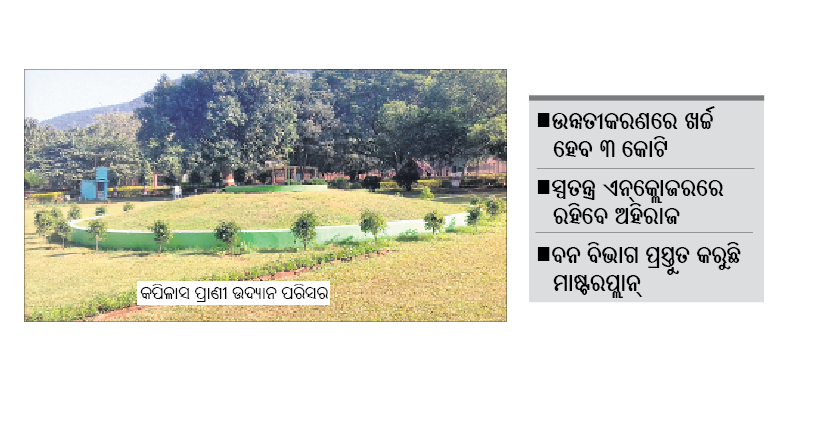 କପିଳାସ ପ୍ରାଣୀ ଉଦ୍ୟାନରେ ବୃଦ୍ଧି ପାଉଥିବା ପର୍ଯ୍ୟଟକଙ୍କୁ ମଧୁର ଅନୁଭୂତି ପ୍ରଦାନ କରିବାକୁ ମାଷ୍ଟରପ୍ଲାନ ପ୍ରସ୍ତୁତ କରାଯାଉଛି। ୩ କୋଟି ଟଙ୍କା ବ୍ୟୟ ଅଟକଳରେ ଜୁ’ର ଉନ୍ନତୀକରଣ କରାଯିବ ବୋଲି ଜିଲା ବନଖଣ୍ଡ ଅଧିକାରୀ ଡା. ପ୍ରକାଶଚାନ୍ଦ ଗୋଗିନେନି ସୂଚନା ଦେଇଛନ୍ତି ା