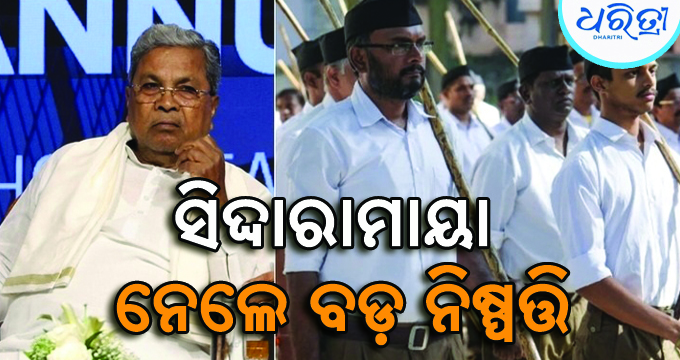 ବେଙ୍ଗାଲୁରୁ,୧୬ା୧୦: କର୍ନାଟକରେ ରାଷ୍ଟ୍ରୀୟ ସ୍ବୟଂସେବକ ସଂଘ (ଆର୍ଏସ୍ଏସ୍)ର ବିଭିନ୍ନ କାର୍ଯ୍ୟକୁ ରୋକିବା ପାଇଁ ରାଜ୍ୟ କ୍ୟାବିନେଟ୍ ଗୁରୁବାର ନିଷ୍ପତ୍ତି ନେଇଛି। ଉକ୍ତ ନିଷ୍ପତ୍ତି ଅନୁଯାୟୀ ଆର୍ଏସ୍ଏସ୍ କାର୍ଯ୍ୟକର୍ତ୍ତାମାନେ ରାସ୍ତାରେ ଶୋଭାଯାତ୍ରା ଏବଂ ସର୍ବସାଧାରଣ ସ୍ଥାନରେ ତଥା ସରକାରୀ ଅନୁଷ୍ଠାନଗୁଡ଼ିକରେ କାର୍ଯ୍ୟକ୍ରମ କରିପାରିବେ ନାହିଁ।
