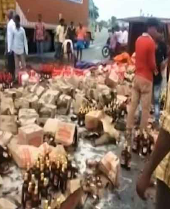 A truck carrying beer bottles turned turtle in #Chikkamagaluru, #Karnataka. Need I say what happened after the incident?