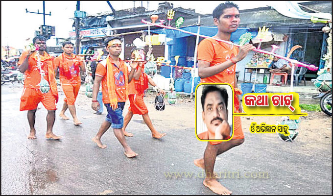 ସେ ଯାହାହେଉ ପ୍ରଥମେ ଗଡ଼ଗଡ଼ିଆ ଘାଟରେ ପୂଜାପାଠ ସାରି ଆମେ ସମସ୍ତେ ଗ୍ରୁପ ଫଟୋ ନେଲୁ। ସେଦିନ ଯୋଗକୁ ଯାତ୍ରା ଆରମ୍ଭ ସମୟରେ ଝିପି ଝିପି ବର୍ଷା ହେଲା । ଭକ୍ତଙ୍କ ଚାଲିବା ସୁଗମ ହେବ ବୋଲି ବାବା ଲୋକନାଥ ଉପରୁ ଆଶୀର୍ବାଦ କଲେ ଜାଣି ସମସ୍ତେ ‘ଆନନ୍ଦେ ଏକ ବାର ହର ହର ବୋଲ ’ ଧ୍ୱନି ଦେଇ ବୀରଦର୍ପରେ ଯାତ୍ରା ଆରମ୍ଭ କଲେ। କଟକ ରାଜ ରାସ୍ତା ଦେଇ ଆଗେଇ ଚାଲିଥାଏ ଆମ ଦଶ ଜଣିଆ ବୋଲବମ୍ ଗ୍ରୁପ। ଆମ ସହ ପଛରେ ଆସୁଥିବା ଡିଜେରେ ବାଜୁଥିବା ବାବାଙ୍କ ଭଜନ ସମ୍ପୂର୍ଣ୍ଣ ପରିବେଶକୁ କରୁଥାଏ ଭକ୍ତିମୟ। ସହର ଛାଡି ଜାତୀୟ ରାଜପଥ ଧରିଲା ପରେ ଦେଖିଲୁ ଶହ ଶହ ବୋଲବମ୍ ଭକ୍ତଙ୍କ ସମାଗମ। ସମସ୍ତେ ଭକ୍ତିରେ ଆଗେଇ ଚାଲିଥାନ୍ତି ବାବାଙ୍କ ମହିମାର ଡାକରା ଦେଇ। ଆମ୍ଭମାନଙ୍କର ସେବନ ନିମନ୍ତେ ମାନସିକଧାରୀମାନେ ରାସ୍ତାଯାକ ଯୋଗେଇ ଦେଉଥାନ୍ତି ଛୋଟ ଛୋଟ କାଗଜ ପୁଡ଼ିଆରେ ଥିବା ପ୍ରସାଦ। ସେସବୁର ସେବନ ପରେ ନିଜ ଭକ୍ତିରେ ଆସୁଥାଏ ଏକ ଅସମ୍ଭବ ଉନ୍ମାଦନା। ଲାଗୁଥାଏ ଯେମିତି ସମୁଦାୟ ରାସ୍ତା ଏବେ ଆମର। ଖାଲ ଢିମା ଗାଡ଼ି ମୋଟର କିଛି ଦିଶେନି, ତା’ପରେ ପଛରୁ ଆସୁଥିବା ଟ୍ରକ୍, ବସ୍ ନିଜେ ନିଜେ ସାଇଡ୍ ହୋଇ ଚାଲିଯାଉଥାନ୍ତି। ବାଟଯାକ ପ୍ୟାକେଜ୍ ଅନୁଯାୟୀ ଆମ ଖାଇବା ପିଇବା ବିଶ୍ରାମ ଘଷାମୋଡ଼ା ସହ ଶ୍ରମ ଲାଘବ ପାଇଁ ବାବାଙ୍କ ନାଁରେ ଚଳୁଥିବା ଅମୋଘ ଔଷଧ ଗଞ୍ଜେଇ ଓ ଭାଙ୍ଗର ବ୍ୟବସ୍ଥା ପ୍ୟାକେଜ ନେଇଥିବା ସଂସ୍ଥା ତରଫରୁ କରାଯାଇଥାଏ।