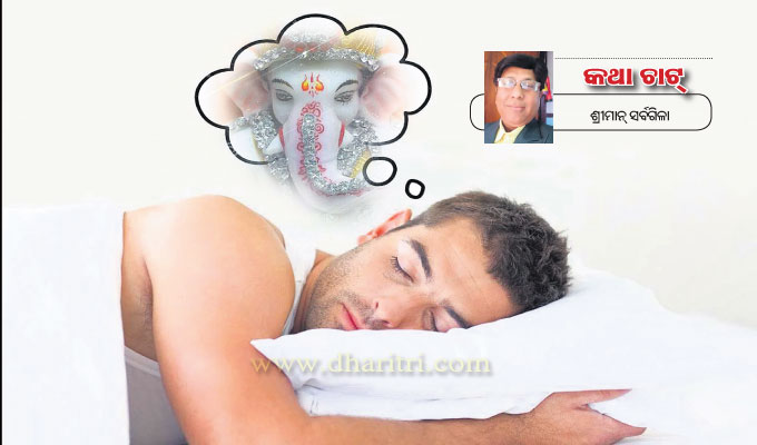 ତଥାପି ଦମ୍ଭବତୀଙ୍କର ଦମ୍ଭ-ବନ୍ଧ ଗଲାକାଲି ରାତିରେ ଭାଙ୍ଗିଗଲା। ଆଦେଶ ନଥିବା ସତ୍ତ୍ୱେ ଗୁଣ୍ଡିଚାରାଣୀ ଦୁଆର ଫିଟେଇ ବିଶ୍ୱକର୍ମାଙ୍କ ତିଆରି ଅଧାଗଢ଼ା ଦାରୁମୂର୍ତ୍ତି ଦର୍ଶନ କଲାପରି, ଦମ୍ଭବତୀ ନିଶାର୍ଦ୍ଧରେ ତାଲା ଖୋଲି ଦାଶେଙ୍କ ପାଖରେ ବସି ଲୁଚିବାର ଅସଲ କାରଣ ପୁଚ୍ଛା କଲେ l ଦାଶେ କହିଲେ… ଏଇଟା ସ୍ବପ୍ନାଦେଶ l ଚାନ୍ଦା ସିଜିନ୍ ଆରମ୍ଭ ଆଗରୁ ଚାନ୍ଦା ଦେଇ ଦେଇ ଚନ୍ଦାହେବା ଭୟରେ ପ୍ରଭୁଙ୍କୁ ପ୍ରାର୍ଥନା କଲାରୁ, ସ୍ବୟଂ ଗଣେଶ ସ୍ବପ୍ନାଦେଶ ଦେଲେ.. ଯା, ଘରେ ଲୁଚିଯା l ଯେମିତି କେହି ଖୋଜି ପାଇବେନି। ଖାଲି କ’ଣ ସେତିକି, କହିଲେ.. ତୋଭଳି ନିର୍ମାୟା, ନିର୍ଲୋଭ, ନିରହଂକାରୀ, ନିଃସ୍ବାର୍ଥପର ଭକତ ଡାକରେ ମୁଁ ଆସିଛି l ଅନ୍ୟ ଦେବଦେବୀଙ୍କ ପରି ମୁଁ ବି ମର୍ତ୍ତ୍ୟକୁ ଆସି ମଣିଷମାନଙ୍କ ମନମୁଖି ପୂଜାରେ ଭାରି ହରକତ.. ହନ୍ତସନ୍ତ ହଉଛି l ଏଇ ପୂଜାପାର୍ବଣ ଋତୁ ଆସିଲେ… ଲୋକଙ୍କ ମାନ୍ଦେଇଯାଇଥିବା ଆଗେଇବା ସହ ପ୍ରବଳ ଭକତି ବଢ଼ିଯାଏ l ନିୟମ ନ ଥିଲେ ବି ମାନୁଛି କିଏ? ଜୋରଜବରଦସ୍ତ ଧମକ ଦେଇ, ଗାଳି ମାଡ଼ ଭୟଦେଖେଇ ଆମ ଦେବଦେବୀଙ୍କ ନାଁରେ ଲକ୍ଷ ଲକ୍ଷ ଟଙ୍କା ଆଦାୟ କରନ୍ତି l ତେଣୁ କଷ୍ଟରେ ଚାନ୍ଦା ଦେଉଥିବା ଲୋକ ଆମକୁ ଗାଳି ଦେଉଛନ୍ତି l ଜଣେ ଲୋକ ପାଞ୍ଚ/ଦଶ ଦଳଙ୍କୁ ଅତିକମରେ ପାଞ୍ଚଶହ ଲେଖାଁ ଗୋଟାଏ ପୂଜାକୁ ଦେଲେ, ସେଇ ହିସାବରେ ଦୁର୍ଗାପୂଜା, କାଳୀପୂଜା, ଗଜଲଷ୍ମୀ, ସରସ୍ବତୀ ପୂଜାଠାରୁ ବିଶ୍ୱକର୍ମା, କାର୍ତ୍ତିକ ଠାକୁରଙ୍କ ପୂଜାକୁ କେତେହଜାର ଟଙ୍କା ବା ଦେବ?