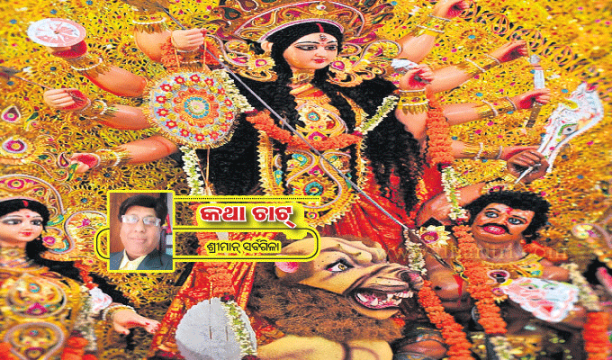 ନବମୀ ରାତିରେ ଛତିଶଗଡରୁ ଆସିଥିବା ମାତାଲିଆ ଝିଅଙ୍କ ନାଚଦେଖି, ନନଭେଜ ଭୋଜିଖାଇ, ଆକଣ୍ଠପିଇ, ଯିଏ ଯୁଆଡେ ଶୋଇ ଯାଇଥିଲେ l ପାହାନ୍ତିଆ ପ୍ରହରରେ ପାଟି ଶୁଭିଲା.. ଗଲା ଗଲା ସବୁ ସରିଗଲା ପଡିଗଲା l ସମସ୍ତେ ଧାଇଁଆସି ଦେଖିଲେ ମଣ୍ଡପ ମଞ୍ଚରେ ନିଆଁଲାଗି ସବୁ ଜଳିଯାଇଛି l ମା’ ବିବସ୍ତ୍ରା ହୋଇ ଯେମିତି ନାଲି ଆଖିକରି କହୁଛନ୍ତି.. ତମେ ପିନ୍ଧେଇଥିବା ନିର୍ଲଜିଆ ବସ୍ତ୍ରଠାରୁ ମୋର ଏଇ ସ୍ବରୂପ ଥରେ ଦେଖିନିଅ l ମହିଷା ମରିବା ଆଗରୁ ଏଇ ରୂପ ତା’ର ମରିବା କାରଣ ଥିଲା l କେତେଦିନ ଆଉ ଆମ ନାଁରେ ପୂଜାର ବାହାନା କରି ନିଆଁସାଙ୍ଗେ ଖେଳିବ?