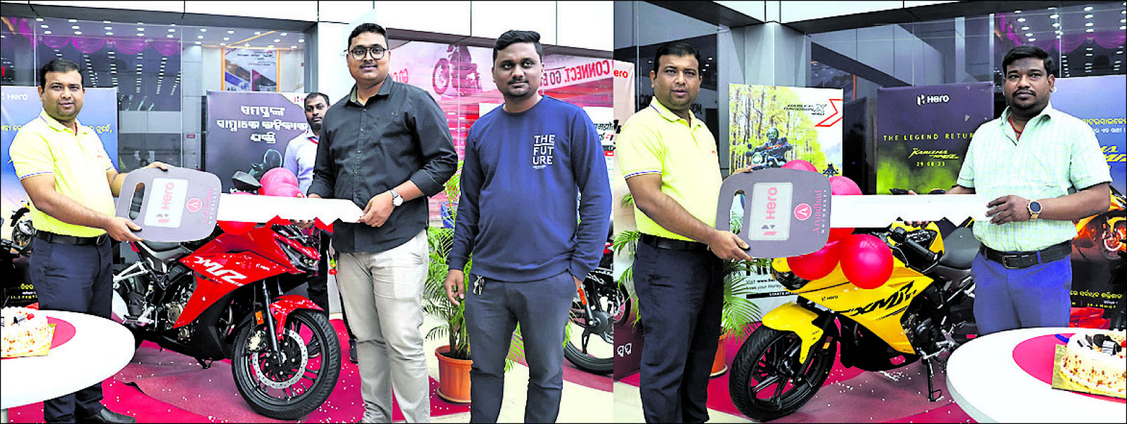 ଭୁବନେଶ୍ୱର,୨୯।୧୨:ହିରୋ ମୋଟକର୍ପର ବହୁ ପ୍ରତୀକ୍ଷିତ ତଥା ଅତ୍ୟାଧୁନିକ ଜ୍ଞାନକୌଶଳରେ ନିର୍ମିତ ପ୍ରିମିୟମ ବାଇକ ‘କରିଜ୍ମା ଏକ୍ସଏମ୍ଆର୍’ର ସର୍ବଭାରତୀୟ ଉନ୍ମୋଚନ ନିକଟରେ ହୋଇଯାଇଛି। ଏହି ପରିପ୍ରେକ୍ଷୀରେ କମ୍ପାନୀର ସ୍ବୀକୃତିପ୍ରାପ୍ତ ଡିଲର ଅରୁନ୍ଧତୀ ମୋଟୋବାଇକ୍ସ ଲୁଇସ୍ରୋଡ୍ ପକ୍ଷରୁ ଏକ ସ୍ବତନ୍ତ୍ର ଅନାବରଣ ଉତ୍ସବର ଆୟୋଜନ କରାଯାଇଥିଲା। ଏହି ପରିପ୍ରେକ୍ଷୀରେ ଅରୁନ୍ଧତୀ ମୋଟୋବାଇକ୍ସ ଜେନେରାଲ ମ୍ୟାନେଜର ରାଜେନ୍ଦ୍ର ମିଶ୍ର ପ୍ରଥମ ୩ ଗ୍ରାହକଙ୍କୁ କରିଜ୍ମା ଏକ୍ସଏମ୍ଆର୍ର ଚାବି ହସ୍ତାନ୍ତର କରିଥିଲେ।