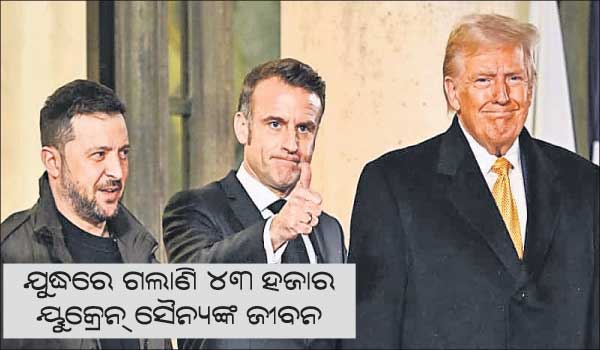 କିଭ୍,୯ା୧୨: ରୁଷିଆ ସହ ପାଖାପାଖି ୩ ବର୍ଷ ହେଲା ଲାଗିଥିବା ଯୁଦ୍ଧରେ ୟୁକ୍ରେନ୍ର ୪୩,୦୦୦ ସୈନ୍ୟ ନିହତ ହେଲେଣି। ରୁଷିଆ ନିକଟ ଭବିଷ୍ୟତରେ ଧ୍ୱଂସ ହେବାର ନାହିଁ। ସେଥିପାଇଁ କିଭ୍ ସ୍ଥାୟୀ ଶାନ୍ତି ଚାହେଁ ବୋଲି ରବିବାର ପ୍ୟାରିସ୍ରେ ଆମେରିକାର ନିର୍ବାଚିତ ରାଷ୍ଟ୍ରପତି ଡୋନାଲ୍ଡ ଟ୍ରମ୍ପ୍ଙ୍କୁ ଭେଟିଥିବା ୟୁକ୍ରେନ୍ ରାଷ୍ଟ୍ରପତି ଭୋଲୋଡିମିର୍ ଜେଲେନ୍ସ୍କି କହିଛନ୍ତି। ଏକ ଚୁକ୍ତିନାମା ପାଇଁ ଜେଲେନ୍ସ୍କି ଆଗ୍ରହୀ ବୋଲି ପୂର୍ବରୁ ଟ୍ରମ୍ପ୍ କହିବା ସହ ବୁଝାମଣା ଆରମ୍ଭ କରିବାକୁ ଆହ୍ବାନ ଦେଇଥିଲେ। ଉଭୟ ପ୍ୟାରିସ୍ସ୍ଥିତ ଏଲିସିରେ ଫ୍ରାନ୍ସ ରାଷ୍ଟ୍ରପତି ଏମାନୁଏଲ୍ ମାକରଁଙ୍କୁ ଭେଟିଥିଲେ। ତୁରନ୍ତ ବିବାଦର ସମାଧାନ କରାଇପାରିବେ ବୋଲି ଟ୍ରମ୍ପ୍ ଦାବି କରିଛନ୍ତି।