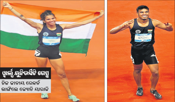ଭୁବନେଶ୍ୱର,୫।୮(ତପନ ସ୍ବାଇଁ): ଚାଇନାର ଚେଙ୍ଗଡୁଠାରେ ଚାଲିଥିବା ଓ୍ବାଲର୍ଡ ୟୁନିଭର୍ସିଟି ଗେମ୍ସରେ କିଟ୍ ବିଶ୍ୱବିଦ୍ୟାଳୟ ଛାତ୍ର ଅମ୍ଳାନ ବୋରଗୋହେନ ପ୍ରଥମ ଭାରତୀୟ ପୁରୁଷ ଆଥ୍ଲେଟ ଭାବେ ଆଥ୍ଲେଟିକ୍ସ ଇଭେଣ୍ଟରେ ପଦକ ହାସଲ କରିଛନ୍ତି। ସେ ପୁରୁଷ ୨୦୦ ମିଟର ରେସ୍ରେ ବ୍ରୋଞ୍ଜ ପଦକ ପାଇଛନ୍ତି। ସେହିପରି ତାରକା ଆଥଲେଟ୍ ଜ୍ୟୋତି ୟାରାଜି ମହିଳା ୧୦୦ ମିଟର ହର୍ଡଲ୍ସରେ ନିଜ ଜାତୀୟ ରେକର୍ଡ ଭାଙ୍ଗିବା ସହ ବ୍ରୋଞ୍ଜ ପଦକ ହାସଲ କରିଛନ୍ତି।
