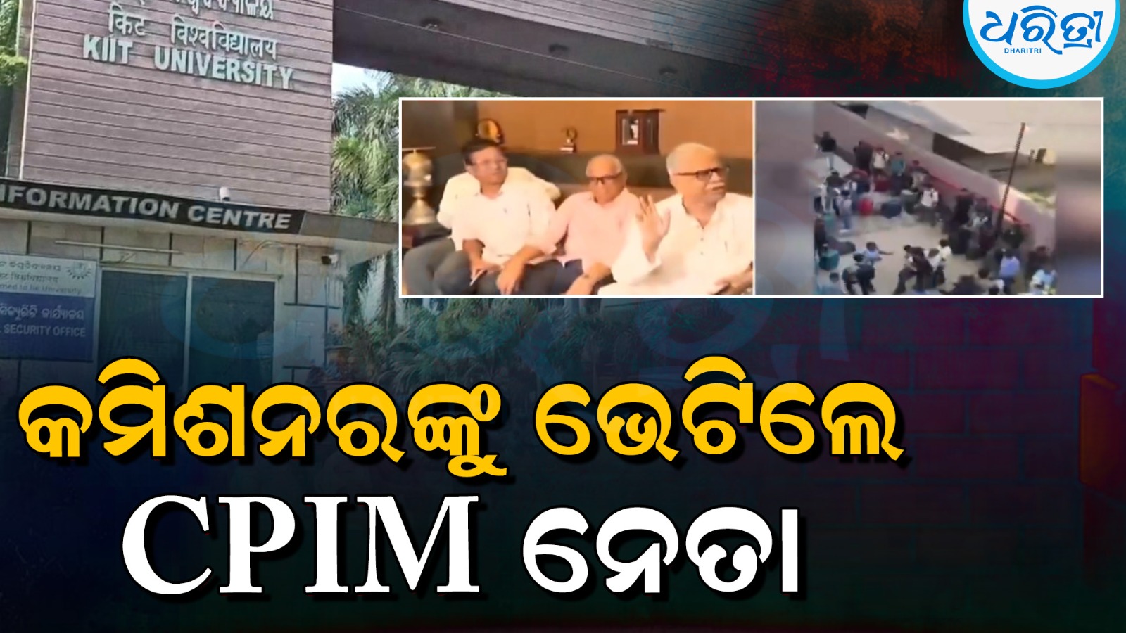 ଭୁବନେଶ୍ୱର,୨୪।୨: KIIT ଘଟଣାରେ ସୋମବାର ପୋଲିସ କମିଶନରଙ୍କୁ ଭେଟିଛନ୍ତି CPIM ନେତା। CPIM ସାଧାରଣ ସମ୍ପାଦକ ଦନାର୍ଦ୍ଦନ ପତିଙ୍କ ସହ ଏକ ପ୍ରତିନିଧି ଦଳ ପୋଲିସ କମିଶନରଙ୍କୁ ଭେଟି KIIT କର୍ତ୍ତୃପକ୍ଷଙ୍କ ଉପରେ ପୋଲିସ ସଠିକ କାର୍ଯ୍ୟାନୁଷ୍ଠାନ ଗ୍ରହଣ କରି ନ ଥିବା ଅଭିଯୋଗ କରିଛନ୍ତି।