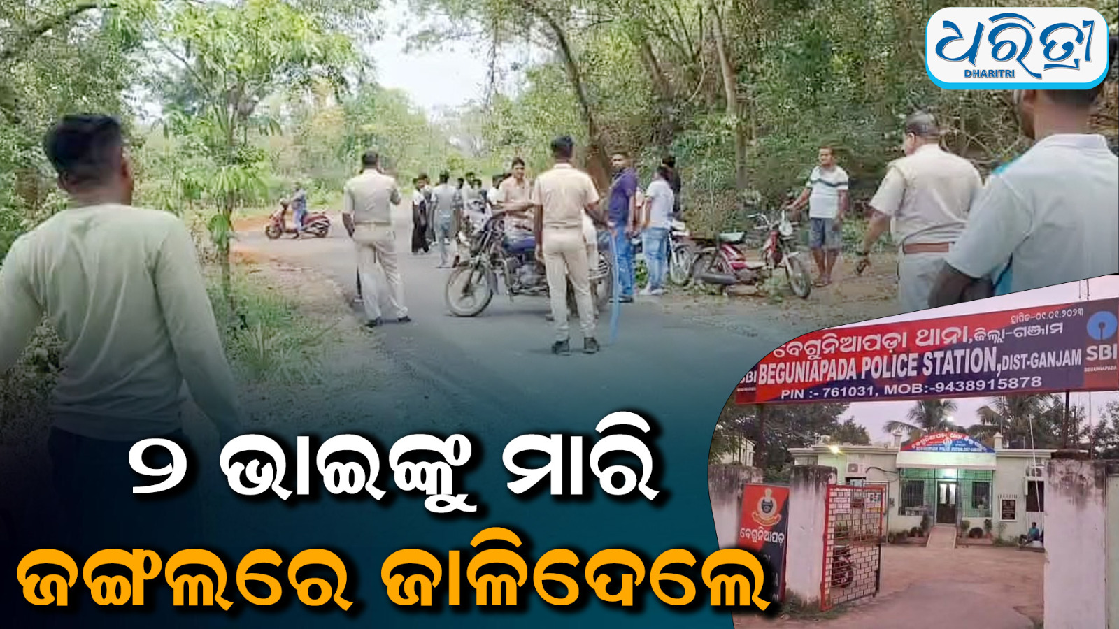 ବେଗୁନିଆପଡା,୨୭।୪(ସୁଶାନ୍ତ ପଟ୍ଟନାୟକ): ପୁଣି ଅଶାନ୍ତ ହେଲା ଗଞ୍ଜାମ। ଜିଲାରୂ ବେଗୁନିଆପଡ଼ା ଥାନା ଶାଳବଣ ଗାଁ ଜଙ୍ଗଲରେ ରବିବାର ଦୁଇ ଭାଇଙ୍କ ଅର୍ଦ୍ଧଦଗ୍ଧ ମୃତଦେହ ଠାବ ହୋଇଛି। ପୂର୍ବ ଶତ୍ରୁତାରୁ ସେମାନଙ୍କୁ ପିଟିପିଟି ହତ୍ୟା କରିବା ପରେ ଜାଳି ଦେବାକୁ ଚେଷ୍ଟା କରାଯାଇଥିବା ସନ୍ଦେହ କରାଯାଉଛି। ମୃତକ ଦୁଇ ଭାଇ ସୁମୁଣ୍ଡଳ ଗାଁର ସଞ୍ଜୟ ବାରିକ(ବଡ) ଓ ଅଜୟ ବାରିକ(ସାନ)। ଘଟଣା ସ୍ଥଳରେ ବେଗୁନିଆପଡ଼ା ପୋଲିସ, ପୁରୁଷୋତ୍ତମପୁର ଏସଡିପିଓ ପହଞ୍ଚି ଘଟଣାର ଛାନଭିନ ଆରମ୍ଭ କରିଛି।