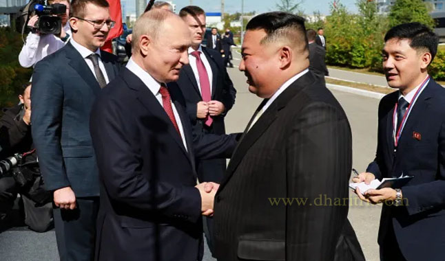 ମସ୍କୋ,୧୩।୯: ଋଷିଆର ରାଷ୍ଟ୍ରପତି ଭ୍ଲାଦିମିର ପୁଟିନ ଉତ୍ତର କୋରିଆର ନେତା କିମ ଜୋଙ୍ଗ ଉନଙ୍କୁ ଭେଟିଛନ୍ତି। ଋଷିଆର ସୁଦୂର ପୂର୍ବ ଆମୁର ଅଞ୍ଚଳରେ ଅବସ୍ଥିତ ଭୋଷ୍ଟୋଚନି କସମୋଡ୍ରୋମରେ ବୁଧବାର କିମଙ୍କୁ ଭେଟିଛନ୍ତି ପୁଟିନ। ଆମେରିକା ସହିତ ଚାଲିଥିବା ବିବାଦ ମଧ୍ୟରେ ଉଭୟ ନେତାଙ୍କ ସାକ୍ଷାତ ଏବେ ଆମେରିକାର ମୁଣ୍ଡବିନ୍ଧାର କାରଣ ସାଜିଛି।
