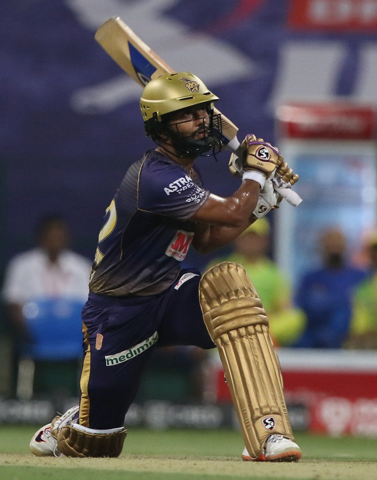 ଟସ୍ ଜିତି ପ୍ରଥମେ ବ୍ୟାଟିଂ କରିଥିଲା କୋଲକାତା। ଏହା ପୂର୍ବରୁ ୨୦୧୫ ମେ’ରେ କୋଲକାତା ଟସ୍ ଜିତି ଶେଷଥରପାଇଁ ବ୍ୟାଟିଂ ନେଇଥିଲା। ଇତିମଧ୍ୟରେ ୩୩ଥର ଟସ୍ ଜିତିଥିଲେ ହେଁ ପ୍ରଥମଥରପାଇଁ ପୁଣି ସେହି ନିଷ୍ପତ୍ତି ନେଇଥିଲା। ଦଳରେ କୌଣସି ଖେଳାଳି ପରିବର୍ତ୍ତନ କରାଯାଇ ନ ଥିଲେ ହେଁ ବ୍ୟାଟିଂ କ୍ରମରେ ଅନେକ ପରିବର୍ତ୍ତନ ହୋଇଥିଲା। ଶୁବମନ୍ ଗିଲ୍ଙ୍କ ସହ ଇନିଂସ ଓପନ କରିବାକୁ ଆସିଥିଲେ ରାହୁଲ ତ୍ରିପାଠୀ। ପୂର୍ବ ମ୍ୟାଚଗୁଡ଼ିକରେ ଓପନର ଦାୟିତ୍ୱ ତୁଲାଇଥିବା ସୁନୀଲ ନାରିନ ୪ ନମ୍ବର ସ୍ଥାନରେ ଆସିଥିଲେ। ଓପନିଂ ଯୋଡ଼ିରେ ୨୬ ବଲ୍ରୁ ୩୭ ରନ ଯୋଗ ହେବାପରେ ଶୁବମନ ମାତ୍ର ୧୧ ରନ କରି ଆଉଟ ହୋଇଥିଲେ। ଫର୍ମରେ ଥିବା ନୀତୀଶ ରାଣା ୯ , ନାରିନ ୧୭ ଓ ୫ ନମ୍ବର ସ୍ଥାନରେ ବ୍ୟାଟିଂ କରିଥିବା ଇଅନ ମୋର୍ଗାନ ୭ ରନରେ ଆଉଟ ହୋଇଥିଲେ। ବିସ୍ଫୋରକ ବ୍ୟାଟ୍ସମ୍ୟାନ ଆନ୍ଦ୍ରେ ରସେଲ ମାତ୍ର ୨ ରନରେ ଆଉଟ ହେବା ଦଳକୁ ବଡ଼ ଝଟ୍କା ପହଞ୍ଚାଇଥିଲା। ଟପ୍ ଓ ମିଡଲ ଅର୍ଡର ବ୍ୟାଟ୍ସମ୍ୟାନଙ୍କ ବିଫଳତା ରାହୁଲ ତ୍ରିପାଠୀଙ୍କ ଉପରେ ଚାପ ବଢ଼ାଇଥିଲା। ତେବେ ସେ ଦୃଢ଼ ବ୍ୟାଟିଂ ଜାରିରଖି ଦଳକୁ ସମ୍ମାନଜନକ ସ୍କୋର ପଥରେ ଆଗେଇ ନେଇଥିଲେ। ୫୧ ବଲ୍ରୁ ୮ ଚୌକା ଓ ୩ ଛକା ସହାୟତାରେ ୮୧ ରନ କରିଥିବାବେଳେ ରାହୁଲ ଡ୍ବେନ ବ୍ରାଭୋଙ୍କ ଏକ ୟର୍କର ଖେଳିବାକୁ ଯାଇ ଶର୍ଟ ଥାର୍ଡମ୍ୟାନ ଅଞ୍ଚଳରେ ଶେନ ଓ୍ବାଟସନଙ୍କୁ କ୍ୟାଚ ଦେଇ ପ୍ୟାଭିଲିୟନ ଫେରିଥିଲେ। ଆଇପିଏଲ୍-୨୦୨୦ରେ ବ୍ରାଭୋଙ୍କର ଏହା ପ୍ରଥମ ଉଇକେଟ ଥିଲା। ଅଧିନାୟକ ଦୀନେଶ କାର୍ତ୍ତିକଙ୍କ ଖରାପ ଫର୍ମ ଜାରି ରଖି ୧୧ ବଲ୍ରୁ ମାତ୍ର ୧୨ ରନ କରିପାରିଥିଲେ। ପ୍ୟାଟ୍ କୁମିନ୍ସ ୯ ବଲ୍ରୁ ୧୭(୧ ଚୌକା, ୧ ଛକା) ରନରେ ଅପରାଜିତ ରହିବାରୁ କୋଲକାତା ସ୍କୋର ୧୬୭ରେ ପହଞ୍ଚତ୍ଥିଲା। ଶେଷ ଓଭରରେ ନାଇଟ ରାଇଡର୍ସ ୩ ଉଇକେଟ ହରାଇଥିଲା। ଚେନ୍ନାଇ ସୁପରକିଙ୍ଗ୍ସ ବୋଲରଙ୍କ ମଧ୍ୟରେ ଡ୍ବେନ ବ୍ରାଭୋ ସର୍ବାଧିକ ୩ଟି ଏବଂ ଶାର୍ଦ୍ଦୁଳ ଠାକୁର, କର୍ନ ଶର୍ମା ଓ ସାମ୍ କୁରାନ ୨ଟି ଲେଖାଏ ଉଇକେଟ ନେଇଥିଲେ।