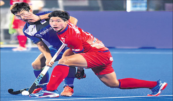 ଏସିଆ କପ୍ ଚାମ୍ପିୟନ କୋରିଆ ଓ ଏସିଆନ ଗେମ୍ସ ଚାମ୍ପିୟନ ଜାପାନ ମଧ୍ୟରେ ଲଢ଼େଇ ସଂଘର୍ଷପୂର୍ଣ୍ଣ ହେବ ବୋଲି ପୂର୍ବାନୁମାନ କରାଯାଉଥିଲା। ମ୍ୟାଚରେ ତାହା ହିଁ ହୋଇଥିଲା। ଜାପାନ ଆରମ୍ଭରୁ ଆକ୍ରମଣାତ୍ମକ ଖେଳି ୧ମ ମିନିଟରେ ହିଁ ପେନାଲ୍ଟି କର୍ନର ସୁଯୋଗ ସୃଷ୍ଟି କରିଥିଲା। ଦଳର ୧୫ ନମ୍ବର ଖେଳାଳି କେନ୍ ନାଗାୟୋଶି ଏହାକୁ ଗୋଲରେ ପରିଣତ କରିି ୨ୟ ମିନିଟରେ ହିଁ ଜାପାନକୁ ଅଗ୍ରଣୀ କରାଇଥିଲେ। ଉଭୟ ପଟରୁ ଆକ୍ରମଣ ଜାରି ରଖି ଜାପାନ କୋରିଆ ଉପରେ ଚାପ ପକାଇଥିଲା। ମାତ୍ର ମୋମେଣ୍ଟମକୁ ଦଳ ବେଶି ସମୟ ଧରି ରଖିପାରି ନ ଥିଲା। ୮ମ ମିନିଟରେ ଜାପାନ ଡି’ ଏରିଆରେ ବଲ୍ ପାଇଁ ସଂଘର୍ଷ ସମୟରେ କୋରିଆର ୧୧ ନମ୍ବର ଖେଳାଳି ଲୀ ଜୁଙ୍ଗଜୁନ୍ ଏକ ଚମତ୍କାର ଫିଲ୍ଡ ଗୋଲ ମାଧ୍ୟମରେ ମ୍ୟାଚକୁ ୧-୧ ସ୍ଥିତିକୁ ନେଇ ଆସିଥିଲେ। ୧୫ତମ ମିନିଟରେ କୋରିଆ କ୍ରମାଗତ ୩ଟି ପେନାଲ୍ଟି କର୍ନର ପାଇଥିଲେ ହେଁ ଏହାର ସଦୁପଯୋଗ କରିପାରି ନ ଥିଲା। ଦ୍ୱିତୀୟ କ୍ୱାର୍ଟର ଆରମ୍ଭରୁ ଉଭୟ ଦଳ ଅଗ୍ରଣୀ ନେବାପାଇଁ ଜୋରଦାର ଉଦ୍ୟମ କରିଥିଲେ। ଜାପାନ ଅନେକ ସୁଯୋଗ ସୃଷ୍ଟିି କରିଥିଲେ ହେଁ ଫିନିଶିଂ ଅଭାବରୁୁ ଗୋଲ ପାଇ ନ ଥିଲା। କୋରିଆ ଗୋଲକିପର କିମ୍ ଝେୟୁନଙ୍କ ପ୍ରଦର୍ଶନ ମଧ୍ୟ ଚମତ୍କାର ରହିଥିଲା। ୨୩ତମ ମିନିଟରେ ଜୁଙ୍ଗଜୁନ୍ ବ୍ୟକ୍ତିଗତ ଏବଂ ଦଳ ପକ୍ଷରୁ ୨ୟ ଗୋଲ ସ୍କୋର କରି କୋରିଆକୁ ଅଗ୍ରଣୀ କରାଇଥିଲେ। ବିପଜ୍ଜନକ ପ୍ରଦର୍ଶନ ପାଇଁ ଏହି ଦଳର ଜୁଙ୍ଗ୍ ମାନ୍ଜେଙ୍କୁୁ ଗ୍ରୀନ୍ କାର୍ଡ ପାଇ ପଡ଼ିଆ ଛାଡ଼ିବାକୁ ପଡ଼ିଥିଲା।