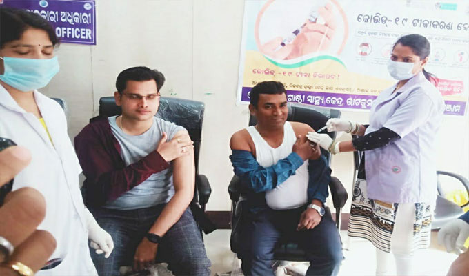 ପୁରୁଷୋତ୍ତମପୁର,୬।୨(ଡି.ଏନ୍.ଏ.): ଗଞ୍ଜାମ ଜିଲା ପୁରୁଷୋତ୍ତମପୁର ବ୍ଲକ ପରିସରରେ ଶନିବାର କୋଭିଡ ଟିକା ଦାନ କାର୍ଯ୍ୟକ୍ରମ ଆରମ୍ଭ ହୋଇଛି। ପ୍ରଥମେ ତହସିଲଦାର ନିତିଶ କୁମାର ତ୍ରିପାଠୀ, ବିଡିଓ ବିଜୟ କୁମାର ବେହେରା, ଅତିରିକ୍ତ ତହସିଲଦାର ସୁନିଲ କୁମାର ଟୁଡୁ ପ୍ରମୁଖ ଟିକା ନେଇଛନ୍ତି। ପ୍ରଥମ ଦିନରେ ୧୧୦ ଜଣଙ୍କୁ ଟିକା ଦେବାର ଲକ୍ଷ୍ୟ ରଖାଯାଇଥିବା ସ୍ବାସ୍ଥ୍ୟ ବିଭାଗୀୟ କର୍ମଚାରୀଙ୍କଠାରୁ ଜଣାପଡିଛି।