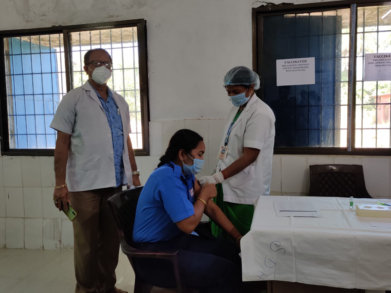 ଧର୍ମଗଡ଼,୧୬।୧: ଶନିବାର କଳାହାଣ୍ଡି ଜିଲା ଧର୍ମଗଡ଼ ଉପଖଣ୍ଡ ସ୍ବାସ୍ଥ୍ୟ କେନ୍ଦ୍ରରେ ଟିକାକରଣ ଅଭିଯାନ ଆରମ୍ଭ ହୋଇଛି। ଆଗ ଧାଡିର କରୋନା ଯୋଦ୍ଧାଙ୍କୁ କୋଭିସିଲ୍ଡ ଟିକା ଦିଆଯାଇଛି। ଧର୍ମଗଡ଼ ଉପଜିଲାପାଳ ଟି.ଏସ୍ ଦିବାକରଙ୍କ ଉପସ୍ଥିତିରେ ଟିକା ଦେବାର ବ୍ୟବସ୍ଥା କରାଯାଇଥିଲା। ଟିକା ନେବା ପରେ କର୍ମଚାରୀଙ୍କୁ ଡାକ୍ତରଖାନାରେ ୩୦ ମିନିଟ ପର୍ଯ୍ୟନ୍ତ ନଜରରେ ରଖାଯାଇଥିଲା। ଧର୍ମଗଡ଼ ଉପଖଣ୍ଡ ସ୍ବାସ୍ଥ୍ୟ କେନ୍ଦ୍ରରେ ପ୍ରଥମ ଦିନରେ ୬୯ଜଣ କରୋନା ଯୋଦ୍ଧାଙ୍କୁ ଟିକାକରଣ କରାଯାଇଥିବା ଡାକ୍ତର ସଦାନନ୍ଦ ପାଣିଗ୍ରାହୀ ପ୍ରକାଶ କରିଛନ୍ତି।