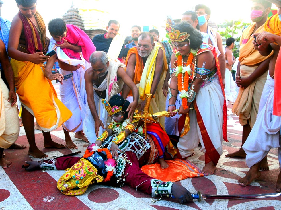 ପୁରୀ ଅଫିସ,୨୯ା୮: ପ୍ରବଳ ପ୍ରତାପୀ କଂସ ବଧ ସହିତ ଶ୍ରୀମନ୍ଦିରରେ ଚାଲିଥିବା କୃଷ୍ଣଲୀଳା ପରିସମାପ୍ତି ଘଟିଛି। ଭାଦ୍ରବ ଶୁକ୍ଲ ଦଶମୀ ଅବସରରେ ଶୁକ୍ରବାର ଶ୍ରୀମନ୍ଦିରରେ ମଧ୍ୟାହ୍ନ ଧୂପ ବଢିବା ପରେ ମହାଜନ ସେବକ ରାମକୃଷ୍ଣଙ୍କୁ ସିଂହାସନରେ ବିଜେ କରାଇଥିଲେ। ସେଠାରେ ଆଜ୍ଞାମାଳ ଲାଗି ହେବା ପରେ ଦୁଇଠାକୁରଙ୍କୁ ବଟବୃକ୍ଷ ନିକଟରେ ଥିବା ପାଲିଙ୍କିରେ ବିଜେ କରାଯାଇଥିଲା। ବିମାନବଡୁମାନେ ପାଲିଙ୍କିକୁ କୁଣ୍ଢାଇବେଣ୍ଟ ସାହିରେ ଥିବା ଲବଣୀଖିଆ ଛକକୁ ନେଇଥିଲେ। ଛକରେ ଥିବା ପନ୍ତିଘରେ ଲବଣୀ ଖିଆ ନୀତି ସମ୍ପନ୍ନ ହୋଇଥିଲା। ସେଠାରେ ଭିତରଚ୍ଛ ମହାପାତ୍ର ଠାକୁରଙ୍କୁ ଆଳତି ବନ୍ଦାପନା କରିବା ସହିତ ମହାଭୋଇଙ୍କ ସର, ଲବଣୀଙ୍କୁ ଠାକୁରଙ୍କୁ ସମର୍ପଣ କରିଥିଲେ। ମହାଜନମାନେ ଠାକୁରଙ୍କୁ ପନ୍ତି ଘର ଖଟଶେଯ ଉପରକୁ ବିଜେ କରାଇବା ପରେ ପୂଜାପଣ୍ଡା ସାମନ୍ତ ଭୋଗ ଲାଗି କରାଇଥିଲେ। ଏହାପରେ ମହାଭୋଇ ଘରର ବୋହୂମାନେ ଠାକୁରଙ୍କୁ ଅର୍ଘ୍ୟ ବନ୍ଦାପନା କରି କ୍ଷୀର, ସର, ଲବଣୀ, ଖୁଆଇଥିଲେ। ଶୀତଳ ଭୋଗ ପରେ ଭିତରଚ୍ଛ ମହାପାତ୍ର ବନ୍ଦାପନା କରିଥିଲେ। ଠାକୁର ପାଲଙ୍କିରେ ବିଜେ ହୋଇ ମରିଚିକୋଟ ଛକ ନିକଟସ୍ଥ ମରିଚି ଠାକୁରାଣୀଙ୍କ ପନ୍ତି ନିମନ୍ତେ ଯାଇଥିଲେ। ଠାକୁରାଣୀଙ୍କ ସମ୍ମୁଖରେ ମାଟିମଣ୍ଡପ ସାହି ଉତ୍ତରକାଳୀ ଆଖଡ଼ାର ଦୁଇଜଣ ମଲ୍ଲ ଯୁଦ୍ଧ ପ୍ରସ୍ତାବ ଆଗତ କରି ଏହି ନୀତି ସମ୍ପନ୍ନ କରିଥିଲେ।