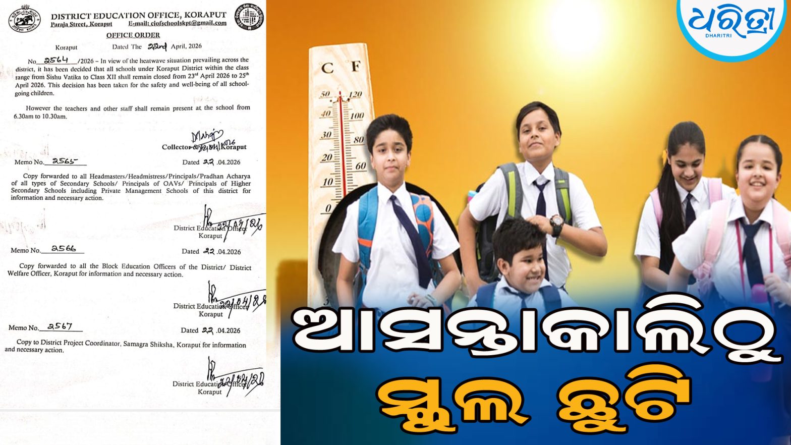 କୋରାପୁଟରେ ସ୍କୁଲ ଛୁଟି ଘୋଷଣା: କାଲିଠୁ ଏତିକି ଦିନ ପର୍ଯ୍ୟନ୍ତ…