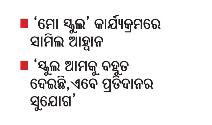 ରାଜ୍ୟ ସରକାରଙ୍କ ମୋ ସ୍କୁଲ କାର୍ଯ୍ୟକ୍ରମ ଆପଣଙ୍କର ପ୍ରିୟ ସ୍କୁଲ ପାଇଁ କିଛି କରିବା ଲାଗି ସୁଯୋଗ ସୃଷ୍ଟି କରିଛି। ଉଦାର ହୃଦୟରେ ଆପଣଙ୍କ ପ୍ରିୟ ବିଦ୍ୟାଳୟକୁ ପୋଷ୍ୟ ଭାବେ ଗ୍ରହଣ କରିବା ପାଇଁ ମୁଖ୍ୟମନ୍ତ୍ରୀ ସମସ୍ତଙ୍କୁ ଅନୁରୋଧ କରିଛନ୍ତି। ସମାଜର ନେତୃବର୍ଗଙ୍କ ଏହି ସାଧୁ ଉଦ୍ୟମ ଅତ୍ୟନ୍ତ ପ୍ରଭାବଶାଳୀ ହେବା ସହିତ ଆପଣମାନଙ୍କ ପାଇଁ ଅନନ୍ୟ ପରିଚୟ ଓ ଅନ୍ୟମାନଙ୍କ ପାଇଁ ଏକ ଅନୁକରଣୀୟ ଉଦାହରଣ ସୃଷ୍ଟି କରିବ। ମୋ ସ୍କୁଲ କାର୍ଯ୍ୟକ୍ରମରେ ସାମିଲ ହୋଇ ରାଜ୍ୟର ଶୈକ୍ଷିକ ପରିବେଶରେ ଆରମ୍ଭ ହୋଇଥିବା ରୂପାନ୍ତରରେ ଯୋଗ ଦେବା ପାଇଁ ସମସ୍ତଙ୍କୁ ମୁଖ୍ୟମନ୍ତ୍ରୀ ଆହ୍ବାନ କରିଛନ୍ତି।