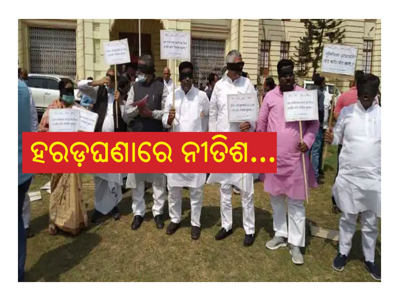 ପାଟନା,୨୪।୩: ବିହାର ବିଧାନସଭାରେ ମଙ୍ଗଳବାର ହୋଇଥିବା ହଙ୍ଗାମା ପରେ ବିରୋଧୀ ଦଳଙ୍କ ପକ୍ଷରୁ ଶାସକଙ୍କୁ ଘେରିବା ଆରମ୍ଭ ହୋଇଛି। ବୁଧବାର ବିଧାନସଭା ପରିସରରେ ଆର୍‌ଜେଡି ଏବଂ କଂଗ୍ରେସ ବିଧାୟକମାନେ ଆଖିରେ କଳାକନା ବାନ୍ଧି ଶାନ୍ତିପୂର୍ଣ୍ଣ ଭାବେ ବିକ୍ଷୋଭ ପ୍ରଦର୍ଶନ କରିଛନ୍ତି। ପ୍ରଶ୍ନକାଳ ସମୟରେ ବିଧାୟକଙ୍କ ସହିତ ଧସ୍ତାଧସ୍ତି କରିଥିବା ସୁରକ୍ଷାକର୍ମୀ ଏବଂ ଅଧିକାରୀଙ୍କ ବିରୋଧରେ ଦୃଢ଼ କାର୍ଯ୍ୟାନୁଷ୍ଠାନ କରାଯିବା ଲାଗି ସେମାନେ ଦାବି କରିଛନ୍ତି। ଏହା ସହିତ ମୁଖ୍ୟମନ୍ତ୍ରୀ ନୀତିଶ କୁମାରଙ୍କ ବିରୋଧରେ ବିଧାୟକମାନେ ସ୍ଲୋଗାନ ଦେଇଛନ୍ତି। ବୁଧବାର ରାଜ୍ୟ ବିଧାନପରିଷଦରେ ଏନେଇ ହଙ୍ଗାମା ହେବାର ଆଶଙ୍କାକୁ ଦୃଷ୍ଟିରେ ରଖି ସୁରକ୍ଷା ବ୍ୟବସ୍ଥା ଗ୍ରହଣ କରାଯାଇଛି।