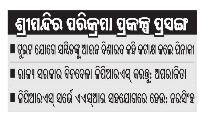 ଏହି ପ୍ରସଙ୍ଗରେ ଭୁବନେଶ୍ୱର ଏମ୍‌ପି ତଥା ବରିଷ୍ଠ ଭାଜପା ନେତା ଅପରାଜିତା ଷଡ଼ଙ୍ଗୀ କହିଛନ୍ତି, ସାଢେ ଚାରିକୋଟି ଓଡ଼ିଶାବାସୀ ଶ୍ରୀମନ୍ଦିର ପରିକ୍ରମା ପ୍ରକଳ୍ପର ସତ ଜାଣିସାରିଲେଣି। ଏବେ ତ ଭୁଲ୍‌ ସୁଧାରିବାକୁ ପଡ଼ିବ। ଏଣୁ ରାତିଅଧିଆ ଜିପିଆର୍‌ଏସ୍‌ କରିବାକୁ ପଡ଼ୁଛି। ଶ୍ରୀଜଗନ୍ନାଥ ଅଭ୍ୟର୍ଥନା କେନ୍ଦ୍ରକୁ ନିଷିଦ୍ଧାଞ୍ଚଳ ବାହାରକୁ ଆଣିବାକୁ ବାଧ୍ୟ ହେଲେ। ଏନ୍‌ଏମ୍‌ଏ ଚିଠି ଲେଖି ପ୍ରଶାସନକୁ ନିର୍ମାଣର ଉଚ୍ଚତା ମେଘନାଦ ପ୍ରାଚୀରଠାରୁ କମ୍‌ ରଖିବାକୁ କୁହାଗଲା। ରାଜ୍ୟ ସରକାର ଭୁଲ୍‌ କରିଛନ୍ତି, ସେଥିପାଇଁ ଚିଠି ଲେଖାଯାଇଥିଲା। ରାଜ୍ୟ ସରକାର ସାମୂହିକ ଭାବେ ଆମ୍‌ସାର୍‌ ଆକ୍ଟ-୧୯୫୮କୁ ଉଲ୍ଲଂଘନ କରିଛନ୍ତି। ଏଣୁ ଏବେ ପାରଦର୍ଶିତା ଦେଖାନ୍ତୁ, ରାତିରେ ନୁହେଁ ବରଂ ଦିନବେଳା ଜିପିଆରଏସ୍‌ କରନ୍ତୁ ବୋଲି ସେ କହିଛନ୍ତି। କଂଗ୍ରେସର ବରିଷ୍ଠ ନେତା ନରସିଂହ ମିଶ୍ର ମଧ୍ୟ ସରକାରଙ୍କୁ ଟାର୍ଗେଟ କରିଛନ୍ତି। ଘନ ଅନ୍ଧକାରରେ ଚୋର ଓ ଡକାୟତମାନେ କାର୍ଯ୍ୟ କରନ୍ତି। ରାଜ୍ୟ ସରକାର ହୁଅନ୍ତୁ ଅବା କେନ୍ଦ୍ର ସରକାର, ଯିଏ ବି ହୁଅନ୍ତୁ, ରାତିଅଧିଆ କାର୍ଯ୍ୟ ବନ୍ଦ ହେଉ। ସ୍ବଚ୍ଛତା ଥିଲେ ଦିବାଲୋକରେ କାର୍ଯ୍ୟ ହେଉ। ଗୃହ କମିଟି ଏକ ସର୍ବଦଳୀୟ କମିଟି। ଏହା ବିଶ୍ୱାସଯୋଗ୍ୟ ତଦନ୍ତ କରିପାରିବେ। ଗୃହ କମିଟି ଯାଇ ଶ୍ରୀମନ୍ଦିର ପରିକ୍ରମା ପ୍ରକଳ୍ପ କାର୍ଯ୍ୟର ସ୍ଥିତି ଯାଞ୍ଚ କରୁ। ରିପୋର୍ଟ ପ୍ରସ୍ତୁତ ହେଉ। ସେହିଭଳି ପ୍ରଶାସନ ଜିପିଆରଏସ୍‌ ସର୍ଭେ ଏଏସ୍‌ଆଇ ସହଯୋଗରେ କରାଯାଉ। ସରକାର ଭୁଲ କରିଛନ୍ତି ଏହା ପ୍ରମାଣିତ ହେଉଛି। ହାଇକୋର୍ଟ ପ୍ରକଳ୍ପ କାର୍ଯ୍ୟ ଉପରେ ରହିତାଦେଶ ଦେବାର ଆବଶ୍ୟକତା ରହିଥିଲା ବୋଲି କହିଛନ୍ତି କଂଗ୍ରେସ ବିଧାୟକ ମିଶ୍ର। ଅନ୍ୟପକ୍ଷରେ ବିଜେଡିର ମୁଖପାତ୍ର ସୁଲତା ଦେଓ କହିଛନ୍ତି, ସମ୍ବିତ ପୁରୀ ଲୋକଙ୍କୁ ବିଭ୍ରାନ୍ତ କରୁଛନ୍ତି। ପ୍ରକଳ୍ପ କାର୍ଯ୍ୟ ଆରମ୍ଭ ପୂର୍ବରୁ ଜିପିଆର୍‌ଏସ୍‌ ହୋଇ ଏନ୍‌ଏମ୍‌ଏକୁ ଡିପିଆର୍‌ ହସ୍ତାନ୍ତର ହୋଇଛି। ଯେଉଁ ସେବାୟତ ଓ ସ୍ଥାନୀୟ ଲୋକେ ପରିକ୍ରମା ପ୍ରକଳ୍ପ ପାଇଁ ଜମି ଅଧିଗ୍ରହଣରେ ସହଯୋଗ କରିଛନ୍ତି, ସେମାନେ କେବେ ହେଲେ କ୍ଷମା କରିବେ ନାହିଁ। ଏଣୁ ସମ୍ବିତ ଅଯଥା ରାଜନୀତି କରିବା ବନ୍ଦ କରନ୍ତୁ ବୋଲି ସୁଲତା ପ୍ରକାଶ କରିଛନ୍ତି।