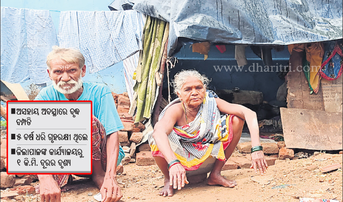 ଭବାନୀପାଟଣା,୭।୮(ଉତ୍ତମ କୁମାର ଦାଶ): ୫ ବର୍ଷ ଧରି ସେ କଳାହାଣ୍ଡି ପୋଲିସରେ ଗୃହରକ୍ଷୀ (ହୋମଗାର୍ଡ) ଭାବେ କାର୍ଯ୍ୟ କରିଥିଲେ। ପରବର୍ତ୍ତୀ ସମୟରେ ବାପାଙ୍କ ମୃତ୍ୟୁ ଓ ଦେହ ଅସୁସ୍ଥତା ଯୋଗୁ ଗୃହରକ୍ଷୀ ଚାକରି ଛାଡି ଦେଇଥିଲେ। ପରେ ତାଙ୍କ ୨ ଛୋଟ ପୁଅଝିଅ ମଧ୍ୟ ଅଜଣା ରୋଗରେ ଆଖି ବୁଝିଥିଲେ। ବର୍ତ୍ତମାନ ବୃଦ୍ଧବସ୍ଥାରେ ଅସହାୟ ଭାବେ ସ୍ତ୍ରୀଙ୍କୁ ଧରି ପଲିଥିନ ତଳେ ଜୀବନ ବିତାଉଛନ୍ତି। ଏଭଳି ଏକ ଦୁଖଃଦ ଚିତ୍ର ଦେଖିବାକୁ ମିଳିଛି କଳାହାଣ୍ଡି ଜିଲା ସଦରମହକୁମା ଭବାନୀପାଟଣା ସହରର ପୁରୁଣାପଡାରେ। ତାଙ୍କ ଘରଠୁୁ ଜିଲାପାଳଙ୍କ କାର୍ଯ୍ୟାଳୟ ପ୍ରାୟ ୧ କି.ମି. ମଧ୍ୟରେ ରହିଥିବାବେଳେ ଏହି ଘଟଣା ପ୍ରତି ଜିଲା ପ୍ରଶାସନର ନଜର ନ ପଡିବା ସାଧାରଣରେ ଆଶ୍ଚର୍ଯର ବିଷୟ। ଭବାନୀପାଟଣା ପୁରୁଣାପଡାରେ ରହନ୍ତି ବୃଦ୍ଧ ଆନନ୍ଦ ଜାଲ (୬୪) ଓ ତାଙ୍କ ସ୍ତ୍ରୀ ସାବିତ୍ରୀ (୬୨)। ପୈତୃକ ଅମଳରୁ ସେ ପୁରୁଣାପଡାରେ ରହୁଥିବାବେଳେ ୨୦୦୭ରେ ତାଙ୍କ ମାଟି ଘର ଭାଙ୍ଗିଯାଇଥିଲା। ଘର ପାଇଁ ସେ ସ୍ଥାନୀୟ ପ୍ରଶାସନ ସମେତ ଜିଲା ପ୍ରଶାସନ ପାଖରେ ଅନେକ ଥର ଗୁହାରି କରିଥିଲେ ମଧ୍ୟ ତାଙ୍କ କେହି ଶୁଣି ନ ଥିବା ଅଭିଯୋଗ କରିଛନ୍ତି। ଏକ ପଲିଥିନ ଘର ତିଆରି କରି ସେତେବେଳେଠୁ ଉଭୟ ସେଠାରେ ଅତି କଷ୍ଠରେ ରହିଆସୁଛନ୍ତି। ଦମ୍ପତି କୁଲି ମଜୁରୀ କରି ଚଳୁଥିବାବେଳେ ପ୍ରଶାସନ ପକ୍ଷରୁ ଉଭୟଙ୍କୁ ଭତ୍ତା ଓ ୩୫ କେଜି ଚାଉଳ ପ୍ରଦାନ କରାଯାଉଛି। ଗତ ୧ ତାରିଖଠୁ ୩ ପର୍ଯ୍ୟନ୍ତ ହୋଇଥିବା ଲଗାଣ ବର୍ଷାରେ ସେମାନେ ନାହଁି ନ ଥିବା ଅସୁବିଧାର ସମ୍ମୁଖୀନ ହୋଇଥିଲେ। ଖବର ପାଇଁ ସ୍ଥାନୀୟ ପୌରାଞ୍ଚଳ ପକ୍ଷରୁ ସେତେବେଳଠାରୁ ଦିନକୁ ୨ ଓଳି ରନ୍ଧାଖାଦ୍ୟ ଦିଆଯାଉଥିବା ପ୍ରକାଶ କରିଛନ୍ତି। ହେଲେ ମୁଣ୍ଡ ଗୁଞ୍ଜିବା ପାଇଁ ଘରଟିଏ ପ୍ରଶାସନ ପକ୍ଷରୁ ଏ ଯାବତ ମିଳି ପାରି ନ ଥିବାରୁ ଦମ୍ପତି ଅସନ୍ତୋଷ ବ୍ୟକ୍ତ କରିଛନ୍ତି। ଏ ନେଇ ଭବାନୀପାଟଣା ପୌରାଞ୍ଚଳ କାର୍ଯ୍ୟନିର୍ବାହୀ ଅଧିକାରୀ ଚିନ୍ମୟ ନାୟକଙ୍କୁ ପଚବାରିବାରୁ ସେମାନଙ୍କୁ ସରକାରୀସ୍ତରରେ କେମିତି ଘରଟିଏ ମିଳିବ ସେ ନେଇଁ ଚେଷ୍ଟା କରିବି ବୋଲି କହିଥିଲେ।