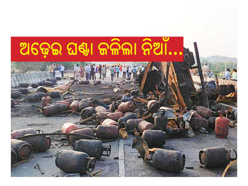 ସିଲିଣ୍ଡର ବୋଝେଇ ଟ୍ରକ୍‌ ଉପରେ ବଜ୍ରପାତ: ୪୫୦ ସିଲିଣ୍ଡରରେ ବିସ୍ଫୋରଣ