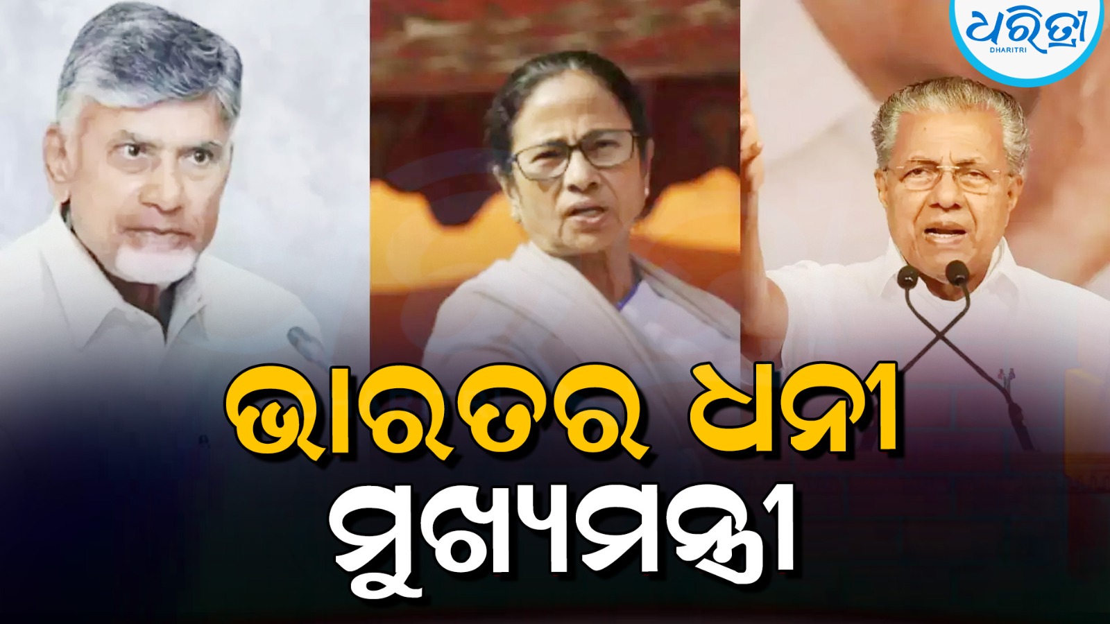 ଆନ୍ଧ୍ରପ୍ରଦେଶ ମୁଖ୍ୟମନ୍ତ୍ରୀ ଏନ୍ ଚନ୍ଦ୍ରବାବୁ ନାଇଡୁ ଭାରତର ସବୁଠାରୁ ଧନୀ ମୁଖ୍ୟମନ୍ତ୍ରୀ। ରିପୋର୍ଟ ଅନୁଯାୟୀ, ତାଙ୍କର ସମ୍ପତ୍ତି ୯୩୧କୋଟି ଟଙ୍କାରୁ ଅଧିକ। ଗତ ବର୍ଷ ଆସୋସିଏଶନ ଫର୍ ଡେମୋକ୍ରାଟିକ ରିଫର୍ମସ (ADR)ର ରିପୋର୍ଟରେ ଏହି ସଂଖ୍ୟା ପ୍ରକାଶ କରାଯାଇଥିଲା।