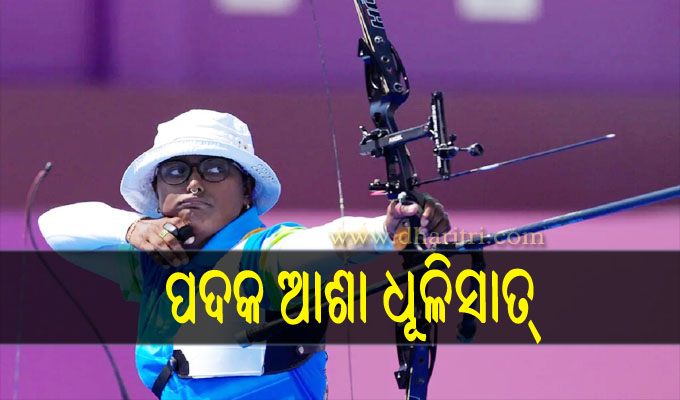 ଟୋକିଓ,୩୦।୭: ଟୋକିଓ ଅଲିମ୍ପିକ୍ସରେ ଭାରତର ଦୀପିକା କୁମାରୀ କୋରିଆର ସାନ ଉନ ବିପକ୍ଷରେ କ୍ୱାର୍ଟର ଫାଇନାଲ ମ୍ୟାଚକୁ ୦-୬ରେ ପରାସ୍ତ ହୋଇଛନ୍ତି। ଫଳରେ ନୀରନ୍ଦାଜୀରେ ଭାରତର ପଦକ ଆଶା ମଉଳିଛି। ତୃତୀୟ ସେଟରେ ଦୀପିକା ୭, ୮, ୯ ସ୍କୋର କରିଥିଲେ। ଏହି ସମୟରେ, ସାନ ଉନ୍ଙ୍କ ଟାର୍ଗେଟ ୮, ୯, ୯ରେ ଥିଲା। ବିଶ୍ୱ ନମ୍ବର ୧ ଦୀପିକା ଆରମ୍ଭରୁ ଏହି ମ୍ୟାଚରେ ଲୟରେ ନ ଥିଲେ। ସେ ପୁରା ମ୍ୟାଚରେ ମାତ୍ର ୨ ଥର ୧୦ ଗୋଲ ସ୍କୋର କରିବାରେ ସକ୍ଷମ ହୋଇଥିଲେ। ସାନ ଉନ୍ ୩ଥର ୧୦କୁ ଟାର୍ଗେଟ କରିଥିଲେ।