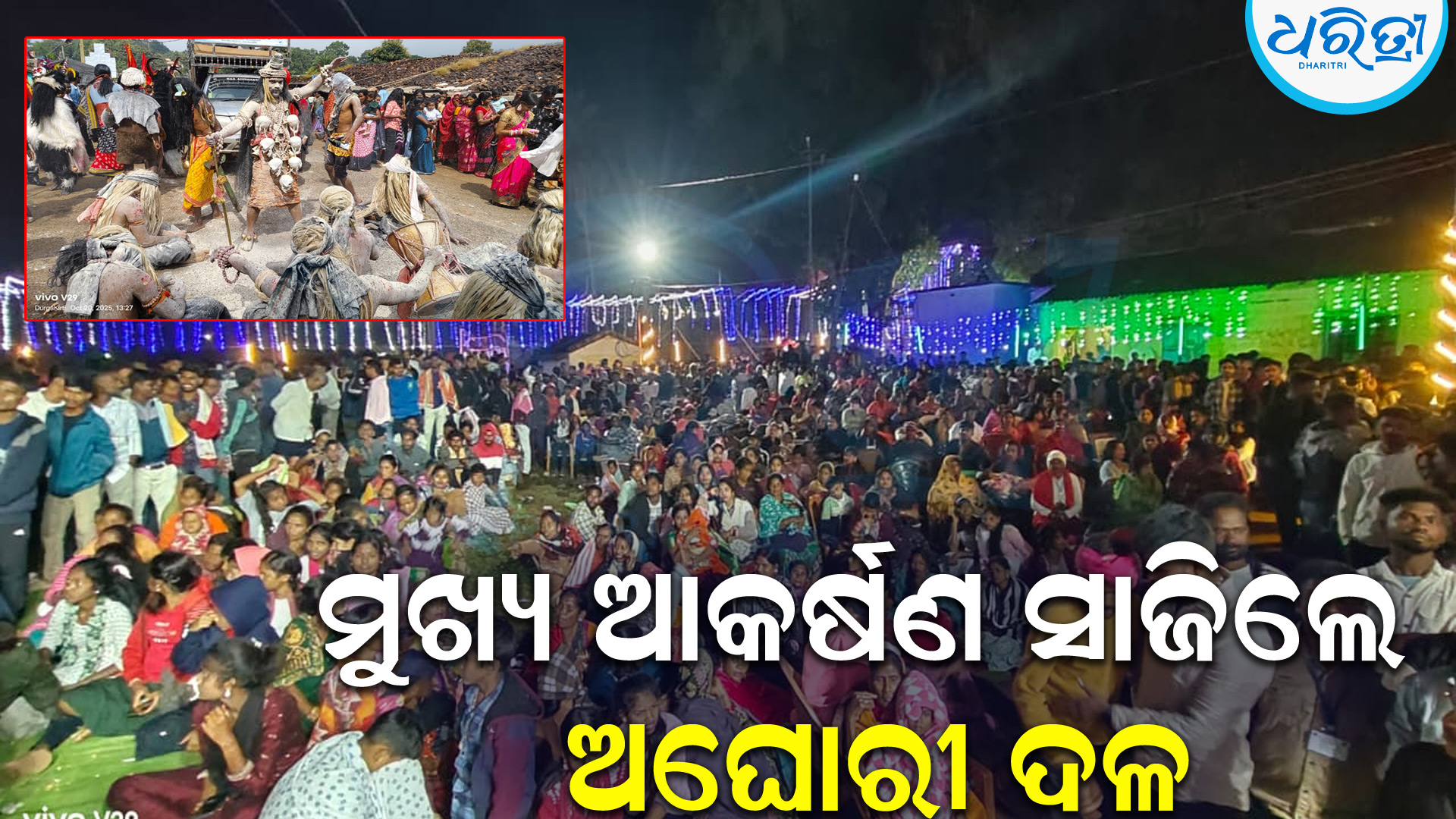 ଥୁଆମୂଳ ରାମପୁର,୨୨।୧୦(ଦୁର୍ଗା କୀର୍ତ୍ତି) : କଳାହାଣ୍ଡି ଜିଲା ଥୁଆମୂଳ ରାମପୁର ବ୍ଲକ ସଦର ମହକୁମାର ତାଳବନ୍ଧ ପଡାରେ ନବ ଜୀବନର ଯୁବ ଅନୁଷ୍ଠାନ ଓ ଦୀପାବଳି ପୂଜା କମିଟିର ମିଳିତ ଆନୁକୂଲ୍ୟରେ ମା’ ମହାକଳୀ(ବେଙ୍ଗୁଳି ଦେବୀ)ଙ୍କ ପୂଜା ଓ ଦୀପାବଳି ପର୍ବରେ ଭୈରବ ଦେବଙ୍କ ଝାମୁଯାତ୍ରା ମହାସମାରୋହରେ ସମ୍ପନ୍ନ ହୋଇଯାଇଛି। ଏହି ଅବସରରେ ଦୀପାବଳି ପର୍ବ ତଥା ପ୍ରଥମ ଦିନ ସୋମବାର ପଡାର ମା ବେଙ୍ଗୁଳି ଦେବୀଙ୍କ ମନ୍ଦିରରେ ପାରମ୍ପରିକ ରୀତିନୀତି ଅନୁଯାୟୀ ମୁର୍ତ୍ତି ସ୍ଥାପନା ଏବଂ ପୂଜାର୍ଚ୍ଚନା କରାଯାଇଥିଲା। ଏହାପରେ ପଡାର ଆବାଳ ବୃଦ୍ଧବନିତା ମିଳିତ ହୋଇ ଗାଁ ନିକଟ ନାଳରୁ ଗଙ୍ଗାଦେବୀଙ୍କୁ ପୂଜାର୍ଚ୍ଚନା ପୂର୍ବକ ଆବାହନ କରି କଳସରେ ଜଳ ଭର୍ତ୍ତି କରି କୁମାରୀ କନ୍ୟା ଏବଂ ଯୁବତୀମାନେ ମୁଣ୍ଡରେ କଳସ ଧାରଣ କରି କଳସ ଯାତ୍ରାରେ ସହର ପରିକ୍ରମା କରିଥିଲେ। ଶେଷରେ ପଡାସ୍ଥିତ ମନ୍ଦିରରେ ଉକ୍ତ କଳସ ଗୁଡିକୁ ସ୍ଥାପନ କରିଥିଲେ। ଏହି କଳସ ଶୋଭାଯାତ୍ରାରେ ସ୍ଥାନୀୟ ଯୁବକଙ୍କ ଦ୍ବାରା ବିଭିନ୍ନ ବ୍ୟଙ୍ଗାତ୍ମକ ବେଶଭୂଷା ସହିତ କଳା ପ୍ରଦର୍ଶନ କରିଥିବା ଦେଖିବାକୁ ମିଳିଥିବା ବେଳେ ସେଥିରେ ମୁଖ୍ୟ ଆକର୍ଷଣ ସାଜିଥିଲା ଅଘୋରୀ ଦଳଙ୍କ ବିଚିତ୍ର ବେଶ l ଅନୁଷ୍ଠାନ ତଥା ପଡ଼ାର କିଛି ଯୁବକ ବାବା ମହାକାଳ ଦେବଙ୍କ ଅନ୍ୟ ରୂପ ଅଘୋରୀ ବେଶରେ ବାହାରି ମୁଖ୍ୟ ଆକର୍ଷଣର କେନ୍ଦ୍ରବିନ୍ଦୁ ପାଲଟିଥିଲେ l