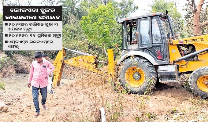 କୋକସରା,୨୦।୩(ଡି.ଏନ.ଏ.): କଳାହାଣ୍ଡି ଜିଲା କୋକସରା ବ୍ଲକ କାଉଡୋଲ ପଞ୍ଚାୟତ କୁମୁଡାମୁଣ୍ଡା ଗାଁରେ ମହାତ୍ମା ଗାନ୍ଧୀ ଜାତୀୟ ନିଶ୍ଚିତ କର୍ମ ନିଯୁକ୍ତି ଯୋଜନା (ଏମ୍ଜିଏନ୍ଆରଇଜିଏସ୍) ଫେଲ୍ ମାରିଛି। ଏଠାରେ ଶ୍ରମିକ ବଦଳରେ ମେଶିନ କରୁଛି କାମ। ଉକ୍ତ ଯୋଜନାରେ ଏକ ଚେକଡ୍ୟାମ କାର୍ଯ୍ୟ ଆରମ୍ଭ ହୋଇଥିବା ବେଳେ ପ୍ରଶାସନଙ୍କ ନିୟୋଜିତ କର୍ମଚାରୀମାନେ ଶ୍ରମିକ ବଦଳରେ ଜେସିବି ମେଶିନରେ କାର୍ଯ୍ୟ ଆରମ୍ଭ କରିଛନ୍ତି। କାଉଡୋଲା ପଞ୍ଚାୟତ କୁମୁ ଗ୍ରାମରେ ଚେକଡ୍ୟାମରେ ଉକ୍ତ ଯୋଜନାରେ ଶ୍ରମିକଙ୍କ ହକକୁ ଛଡାଇ ଜେସିବି ମେଶିନ ଲଗାଇ କାର୍ଯ୍ୟ ଆରମ୍ଭ ହୋଇଛି। ବିଡମ୍ବନାର କଥା କୋକସରା ବ୍ଲକରେ ୨୦୨୨ରେ ଦାଦନ ଖଟିବାକୁ ରାଜ୍ୟ ବାହାରକୁ ଯାଇ ପ୍ରାୟ ୧୧ଜଣ ଶ୍ରମିକଙ୍କ ମୃତ୍ୟୁ ଘଟିଛି। କିଛି ଦାଦନ ଶ୍ରମିକଙ୍କ ମୃତଦେହ ଗାଁକୁ ଫେରିଥିବା ବେଳେ ଆଉ କିଛି ଭିଟାମାଟିକୁ ଫେରି ପାରି ନ ଥିଲା। ୨୦୨୩ରେ କୋକସରା ବ୍ଲକରେ ବର୍ତ୍ତମାନ ସୁଦ୍ଧା ୩ଜଣ ଦାଦନ ଶ୍ରମିକଙ୍କ ମୃତ୍ୟୁ ହୋଇ ସାରିଛି। ଅନ୍ୟପକ୍ଷରେ ବ୍ଲକ ପ୍ରଶାସନ ଉକ୍ତ ଯୋଜନାରେ ୧୦୦ ଦିନର କାର୍ଯ୍ୟ ଦିବସ ଯୋଗାଇଥିବା ଶ୍ରମିକଙ୍କ ଜବକାର୍ଡରେ ଦର୍ଶାଇ କାଉଡୋଲା ପଞ୍ଚାୟତରେ ଉକ୍ତ ଯୋଜନା ସଫଳ ରୂପାୟନ ହୋଇଥିବା ନେଇ ବାହାବା ନେଇଥିଲେ। ତେବେ ଉକ୍ତ ଯୋଜନା କାହାପାଇଁ ବୋଲି ଏଠାରେ ପ୍ରଶ୍ନ ଉଠୁଛି । କନିଷ୍ଠ ଯନ୍ତ୍ରୀଙ୍କଠାରୁ ଆରମ୍ଭ କରି ପଞ୍ଚାୟତ ସରପଞ୍ଚ, ପିଇଓ, ଜିଆରଏସ କର୍ମଚାରୀ ସମସ୍ତଙ୍କ ମିଳିଭଗତରେ ଉକ୍ତ ଯୋଜନା କାର୍ଯ୍ୟକାରୀ ହେଉଥିବା ଅଭିଯୋଗ ହେଉଥିବା ବେଳେ ଉକ୍ତ ଯୋଜନା ଶ୍ରମିକଙ୍କ ନାଁରେ ପ୍ରହସନ ପାଲଟିଛି। ବ୍ଲକରେ ଆଗରୁ ମଧ୍ୟ ଅନେକ ଏହି ଯୋଜନାରେ ମେଶିନରେ କାମ କରୁଥିବା ନେଇ ଅଭିଯୋଗ ହୋଇଛି। ହେଲେ ଆଜି ପର୍ଯ୍ୟନ୍ତ କୌଣସି କାର୍ଯ୍ୟାନୁଷ୍ଠାନ ନିଆ ଯାଇନାହିଁ। କାର୍ଯ୍ୟ ସମ୍ପର୍କରେ ବ୍ଲକ ସହକାରୀ ଯନ୍ତ୍ରୀ ଗୋବିନ୍ଦ ବଲ୍ଲଭ ମହାରଣାଙ୍କ ପ୍ରତିକ୍ରିୟା ନେବାରୁ ମେଶିନରେ କାମ କରୁଥିବା ଆମ ନିକଟରେ ଖବରନାହିଁ, ଯଦି ଏମିତି କିଛି ହୋଇଛି ତାହେଲେ ତଦନ୍ତ ପରେ କାର୍ଯ୍ୟାନୁଷ୍ଠାନ ନିଆଯିବ ବୋଲି କହିଛନ୍ତି।