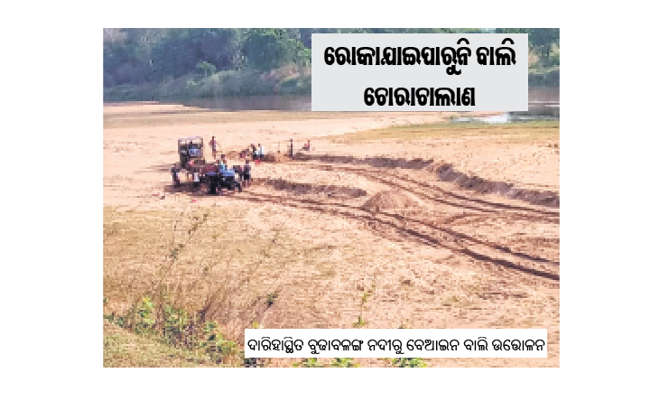 ବାରିପଦା ଅଫିସ, ୮।୫: ମୟୂରଭଞ୍ଜ ଜିଲା ଦେଇ ପ୍ରବାହିତ ବୁଢାବଳଙ୍ଗ ନଦୀର ସଇରାତରୁ ବେଆଇନ ବାଲି ଉତ୍ତୋଳନକୁ ନେଇ ଗ୍ରୀନ ଟ୍ରିବ୍ୟୁନାଲର ଛାଟ ପଡିବା ପରେ ଜିଲା ପ୍ରଶାସନ ନିଦାବିଷ୍ଣୁ ସାଜିଛି। ଜିଲାର ସଦରମହକୁମା ବାରିପଦାସ୍ଥିତ ମଧୁବନ ସଇରାତ ଓ ବେତନଟୀ ତହସିଲ ଅଧୀନ ସଇରାତରୁ ଦିନରାତି ବେଆଇନ ବାଲି ଉତ୍ତୋଳନକୁ ରୋକାଯାଇପାରୁନାହିଁ। ବାରମ୍ବାର ଅଭିଯୋଗ କରିବା ପରେ ମଧ୍ୟ ରାଜସ୍ବ, ପୋଲିସ କିମ୍ବା ଜଙ୍ଗଲ ବିଭାଗ ଏଥିପ୍ରତି ଦୃଷ୍ଟି ଦେଉନାହାନ୍ତି। ଫଳରେ ପୁଞ୍ଜିଭୂତ ଅସନ୍ତୋଷକୁ ନେଇ ସ୍ଥାନୀୟ ଲୋକେ ଗ୍ରୀନ ଟ୍ରିବ୍ୟୁନାଲର ଦ୍ୱାରସ୍ଥ ହେବେ ବୋଲି କଡା ଚେତାବନୀ ଦେଇଛନ୍ତି।