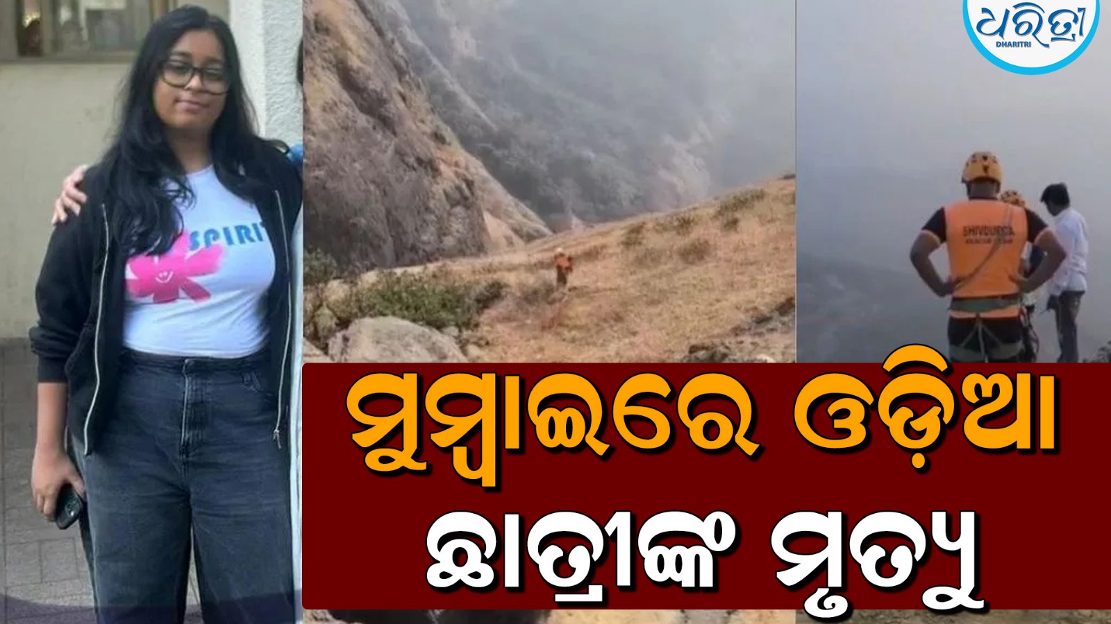 ମୁମ୍ବାଇ,୩ା୨: ମହାରାଷ୍ଟ୍ରର ଲୋନାଓ୍ବାଲାରୁ ଏକ ଦୁଃଖଦ ଖବର ସାମ୍ନାକୁ ଆସିଛି । ଲୋନାୱାଲାରେ ଟ୍ରେକିଂ କରୁଥିବା ସମୟରେ ଓଡ଼ିଶାର ଜଣେ ୧୯ ବର୍ଷୀୟା ଆଇନ ଛାତ୍ରୀଙ୍କ ଦୁଃଖଦ ମୃତ୍ୟୁ ଘଟିଛି । ମୃତକ ହେଲେ ଶ୍ରେୟା ପତି (୧୯) । ତେବେ ସେ ଓଡ଼ିଶାର କେଉଁ ସ୍ଥାନର ବାସିନ୍ଦା ତାହା ବର୍ତ୍ତମାନ ସୁଦ୍ଧା ସ୍ପଷ୍ଟ ହୋଇପାରି ନାହିଁ ।