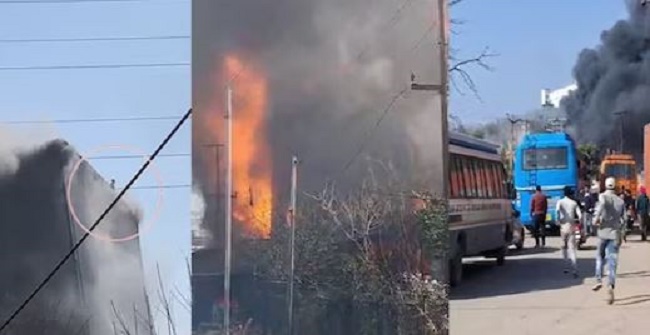 ବଦ୍ଦି,୨।୨: ହିମାଚଳ ପ୍ରଦେଶର ସୋଲାନ ଜିଲାର ଏକ ପ୍ରସାଧନ କାରଖାନାରେ ଅଗ୍ନିକାଣ୍ଡ ଘଟିଥିବା ସୂଚନା ମିଳିଛିି। ୧୫-୨୦ ଶ୍ରମିକ ଏଠାରେ କାରଖାନାରେ ଫସି ରହିଥିବା କୁହାଯାଉଛି। ନିଆଁ ଲାଗିବା ପରେ ଭିଡିଓ ସାମ୍ନାକୁ ଆସିଛି ଯେଉଁଥିରେ ଜଣେ ମହିଳା ଛାତ ଉପରେ ଫସି ରହିଥିବାର ନଜର ଆସିଛନ୍ତି।